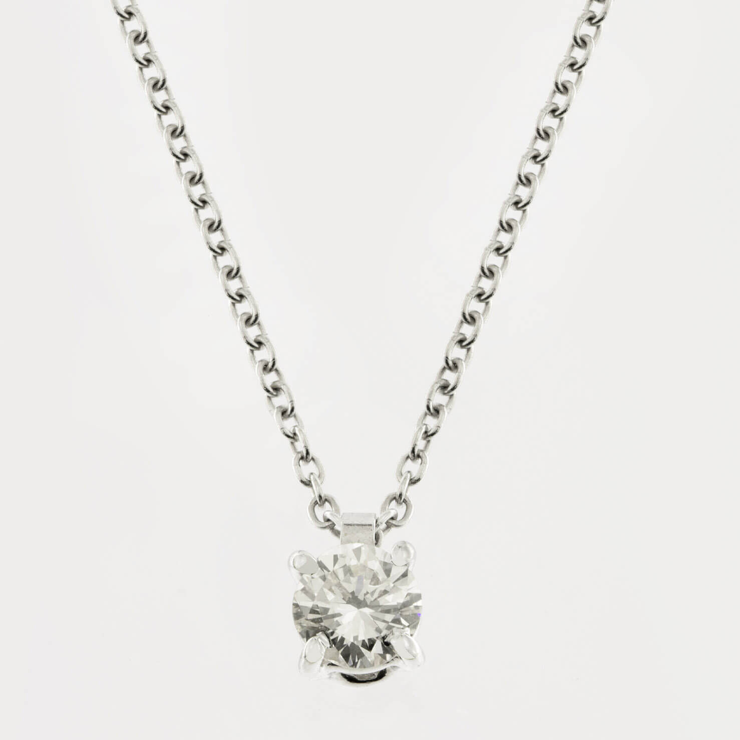 Collana punto luce realizzata in oro bianco 18kt e diamante taglio round 0,20ct. Lunghezza 44cm