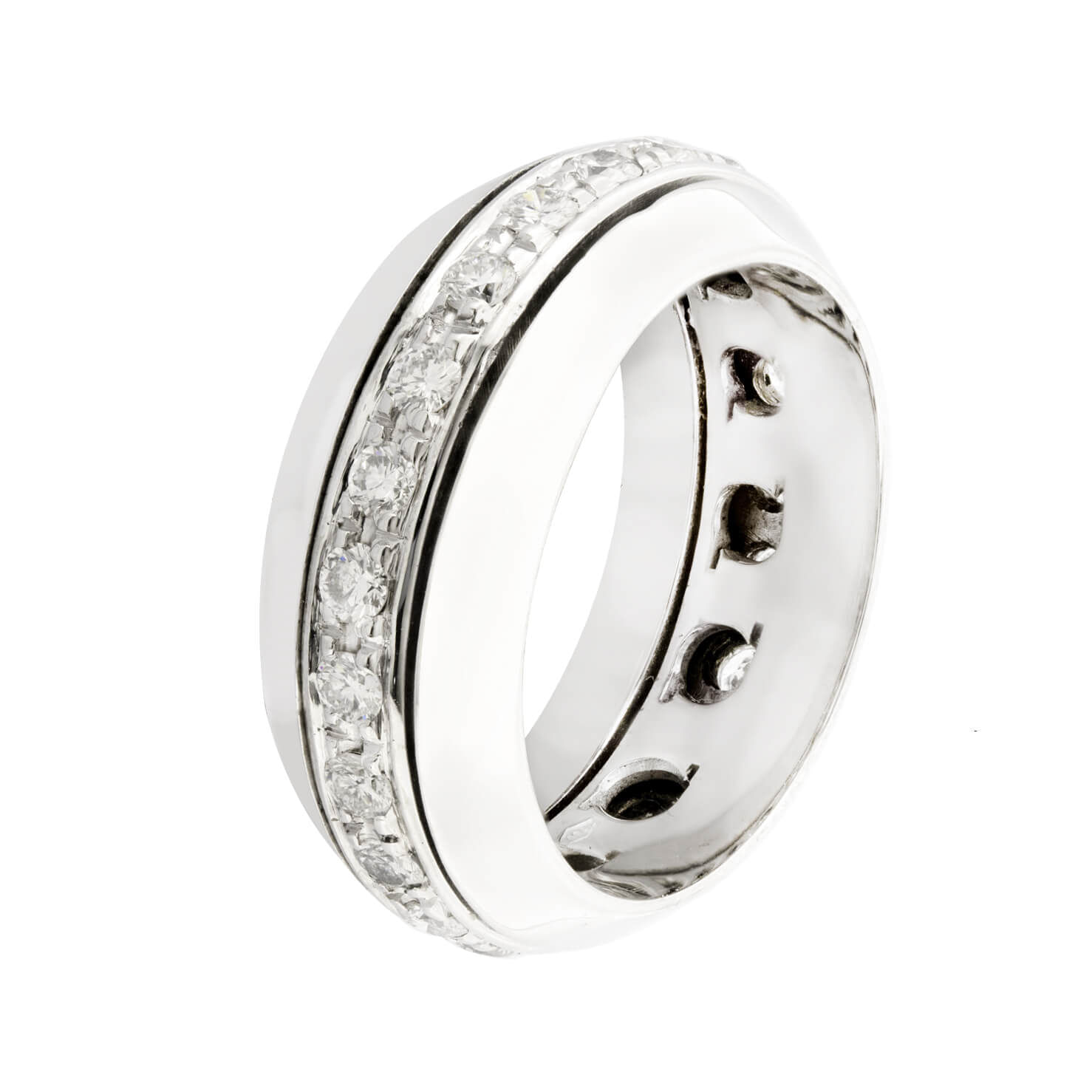 Anello anti stress realizzato in oro bianco 18kt e diamanti taglio round 0,78ct. Misura 13