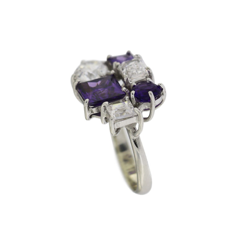 Anello realizzato in argento 925% con ametiste e zirconi.