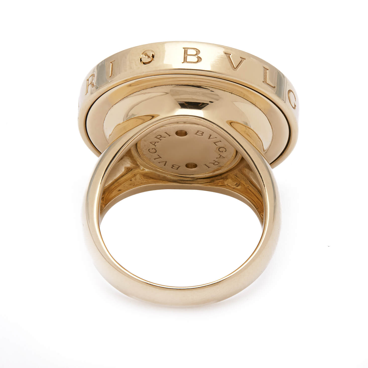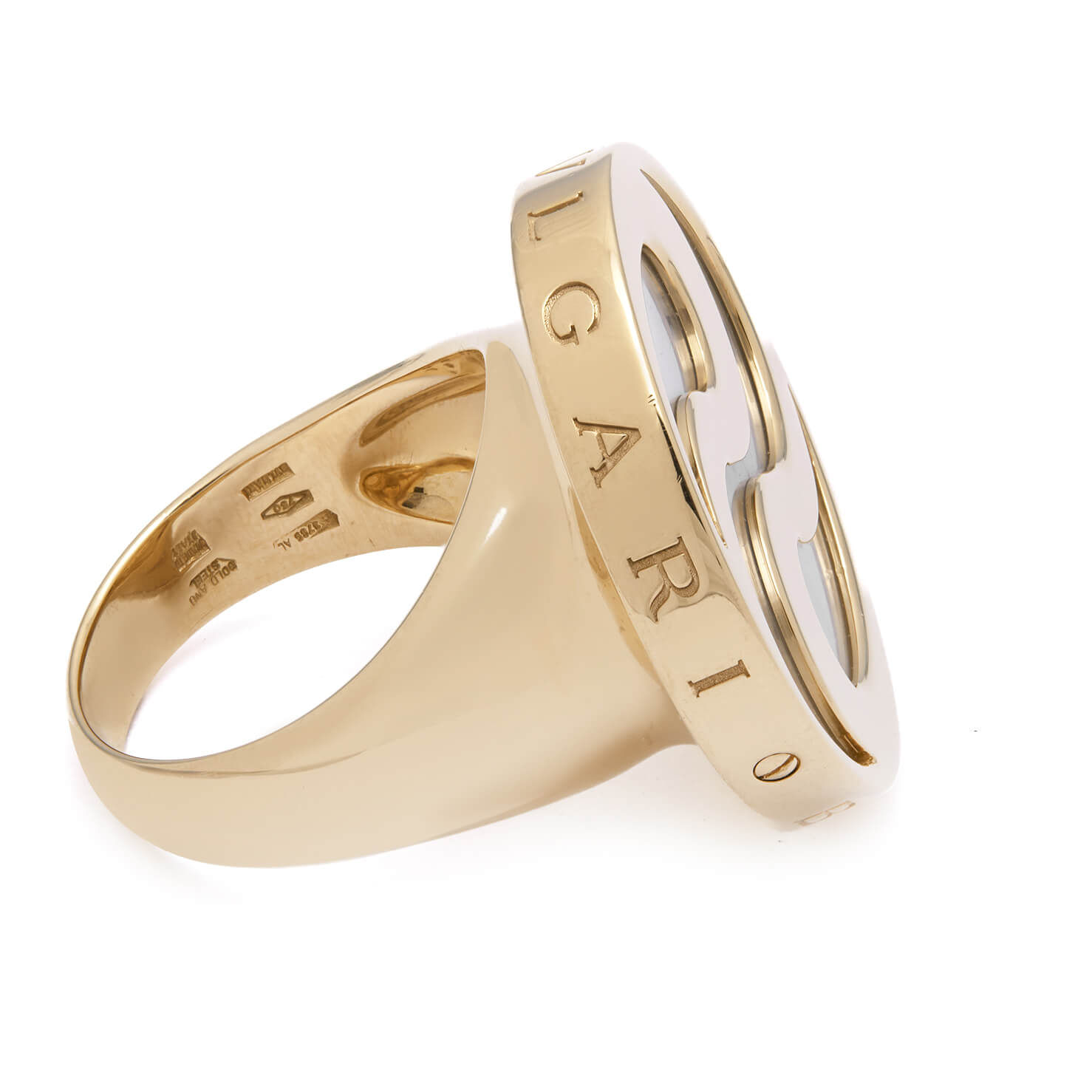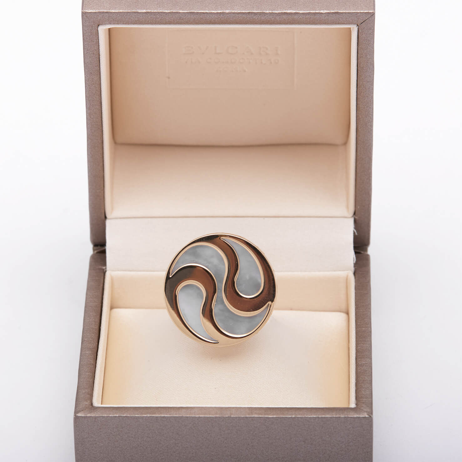 Anello Bulgari Illusion Spinning Optical realizzato in oro giallo 18kt e madreperla. Misura 13