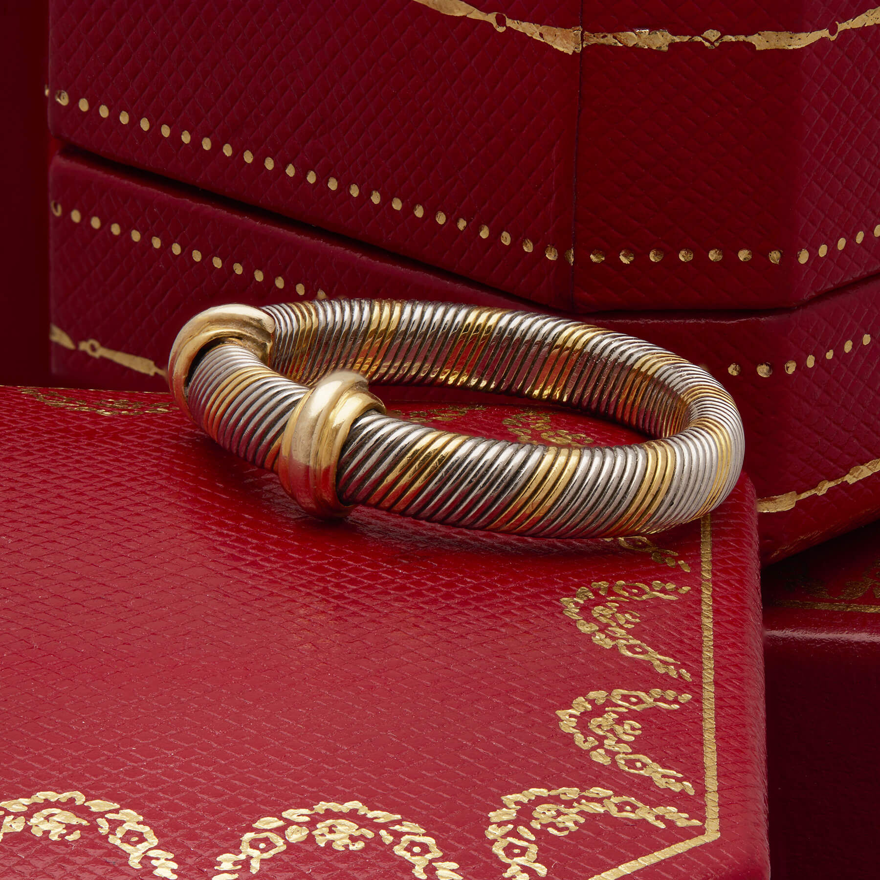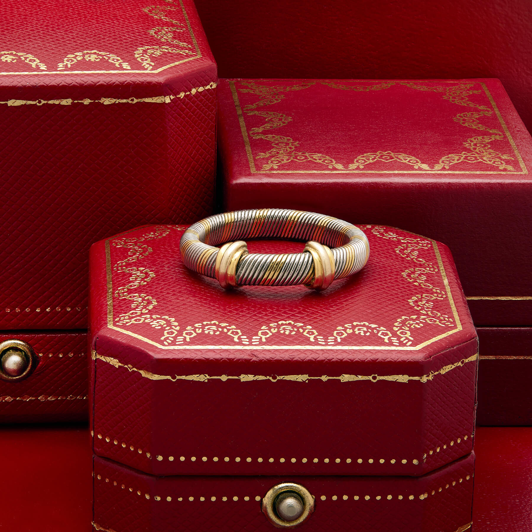 Anello Cartier trinity tubogas in oro giallo 18kt e acciaio
