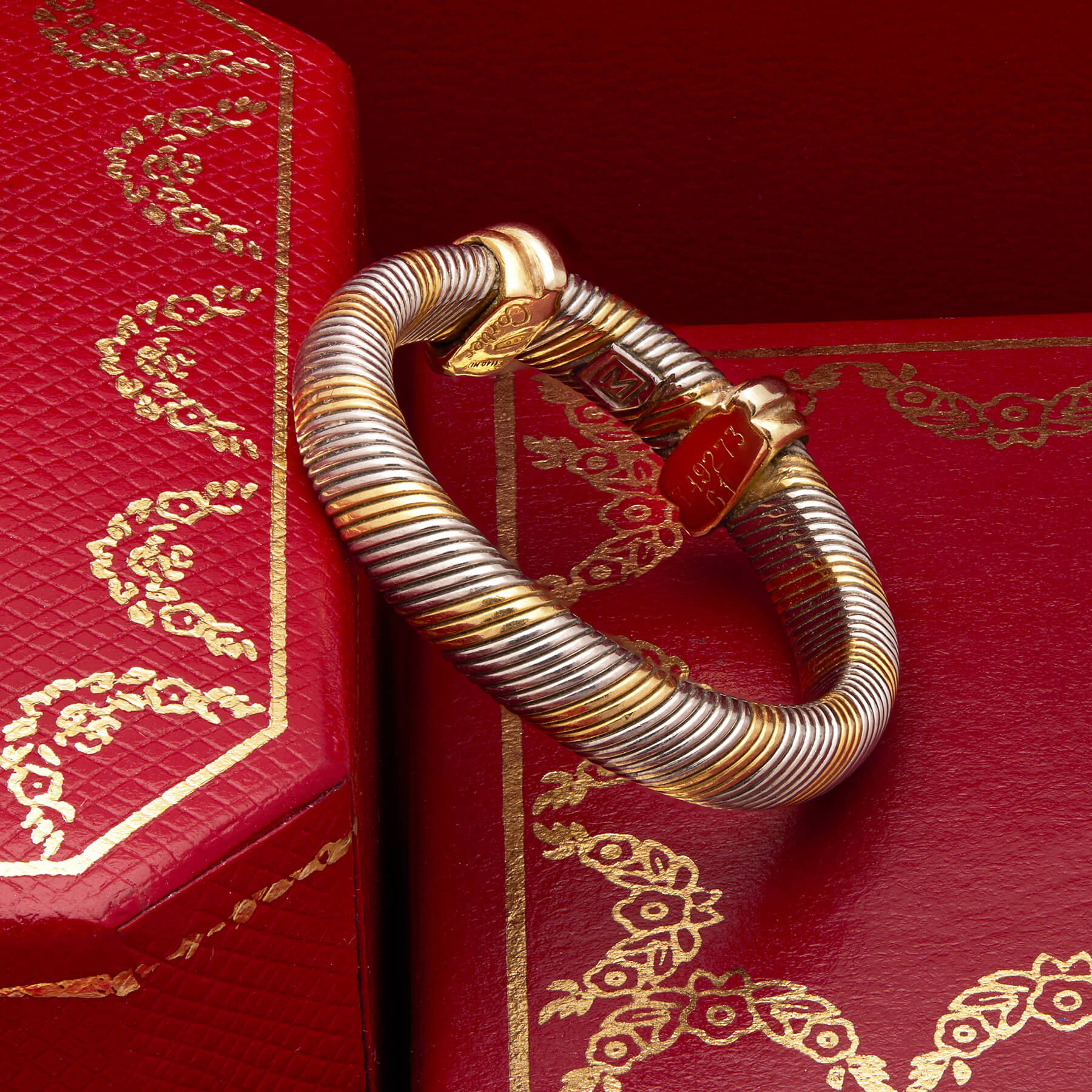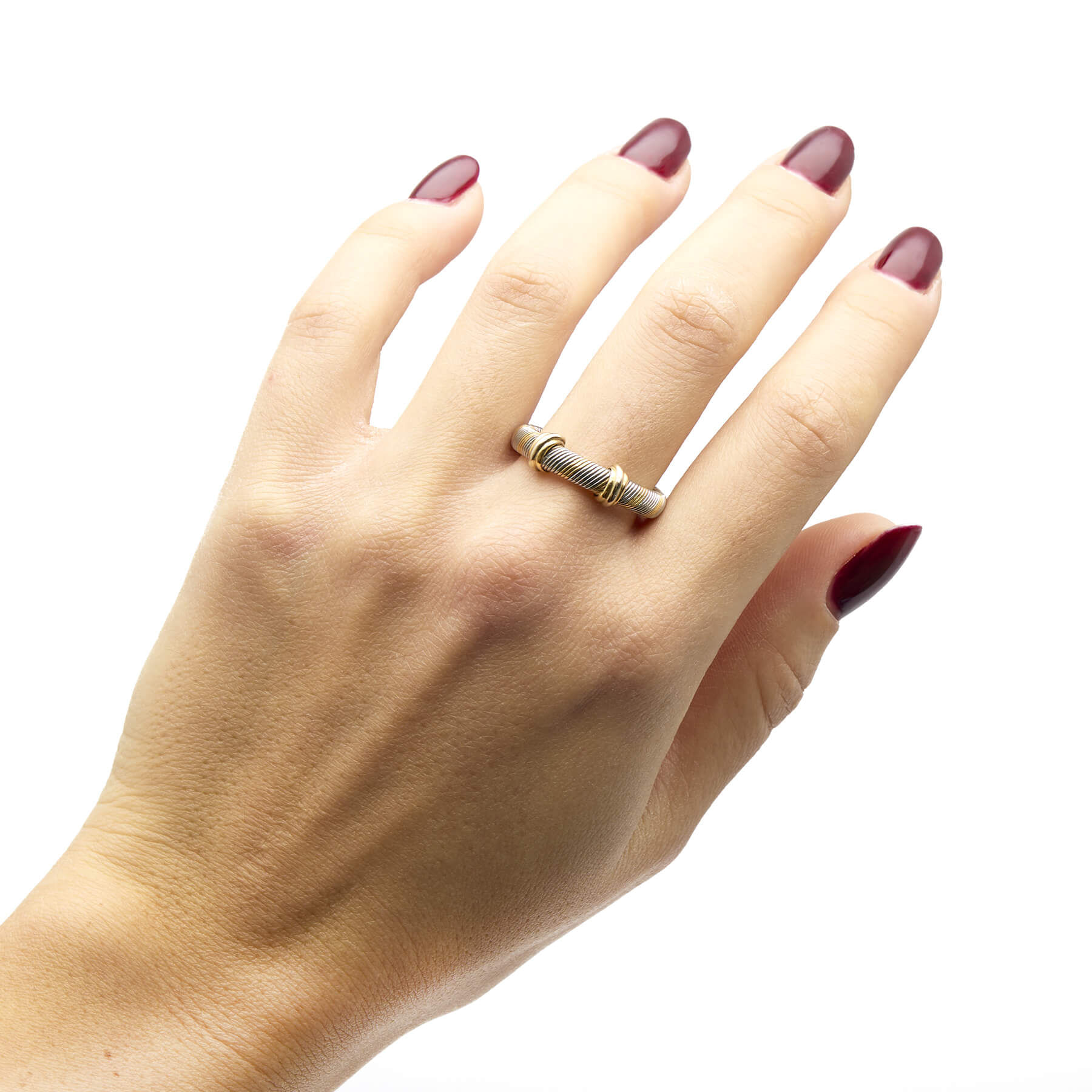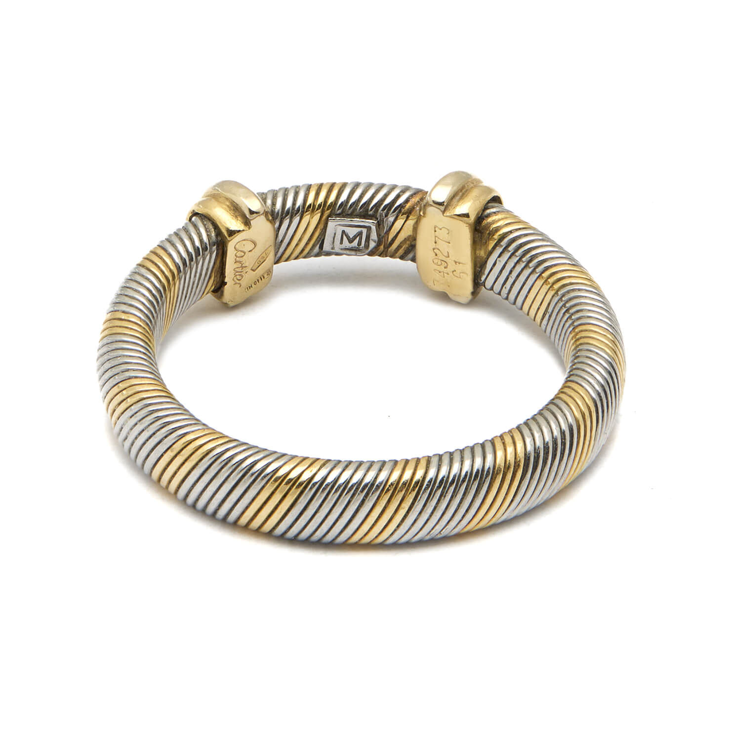 Anello Cartier trinity tubogas realizzato in oro giallo 18kt e acciaio. Misura 21