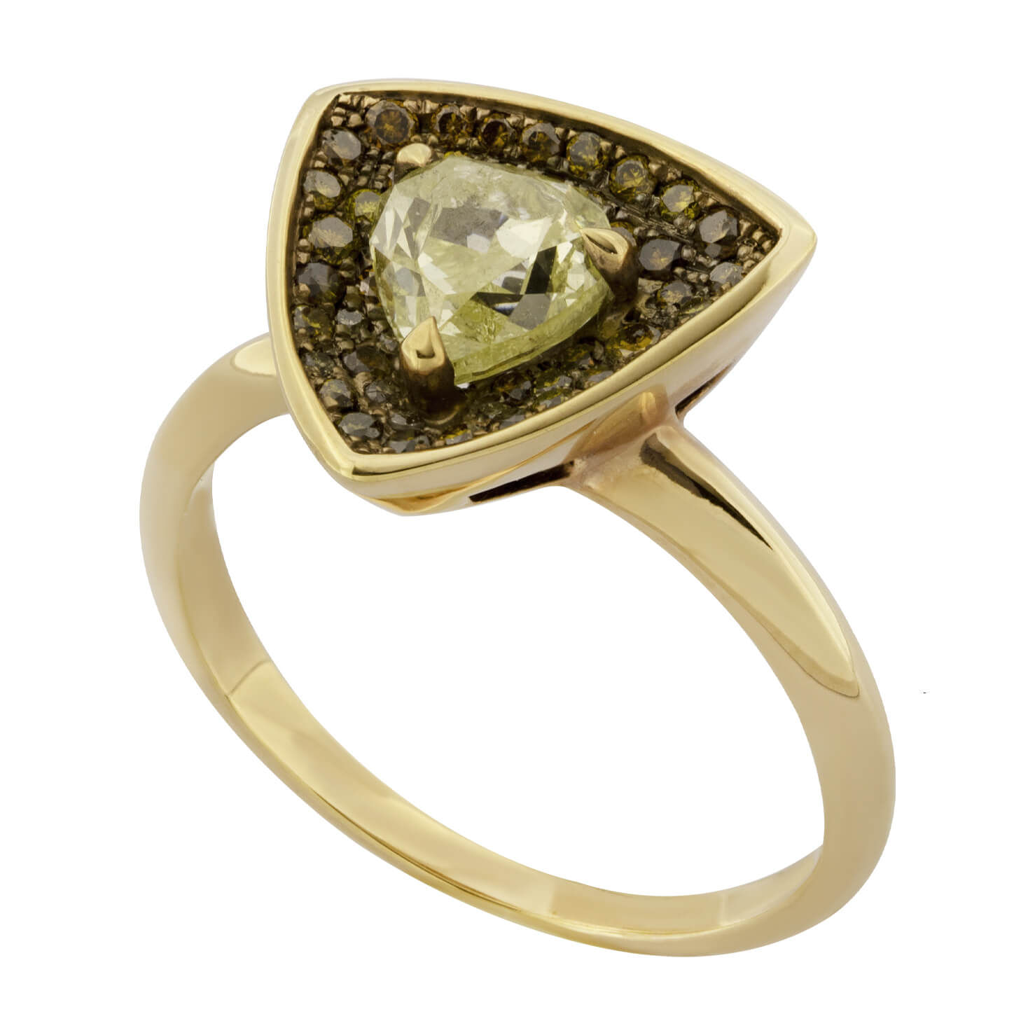 Anello castagna con diamanti brown 0,39ct tot e diamante giallo centrale 1.01ct