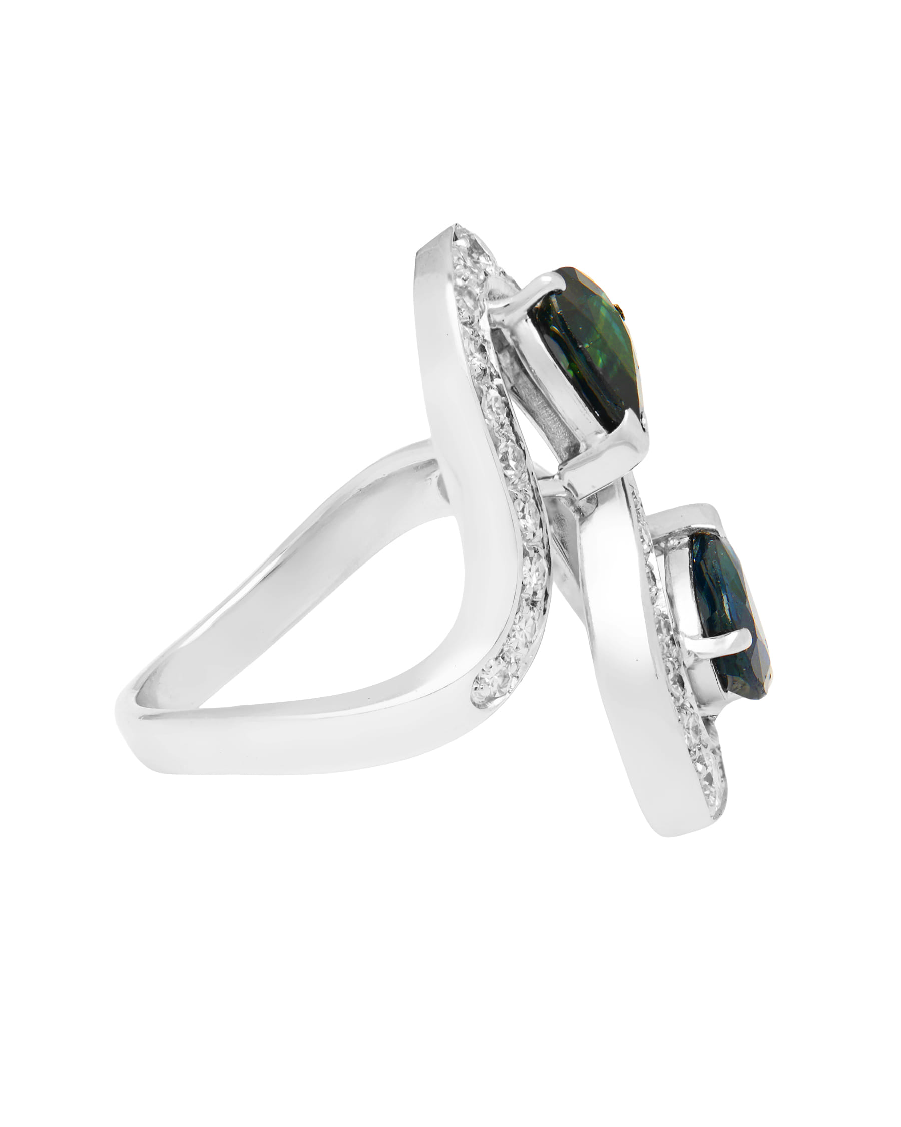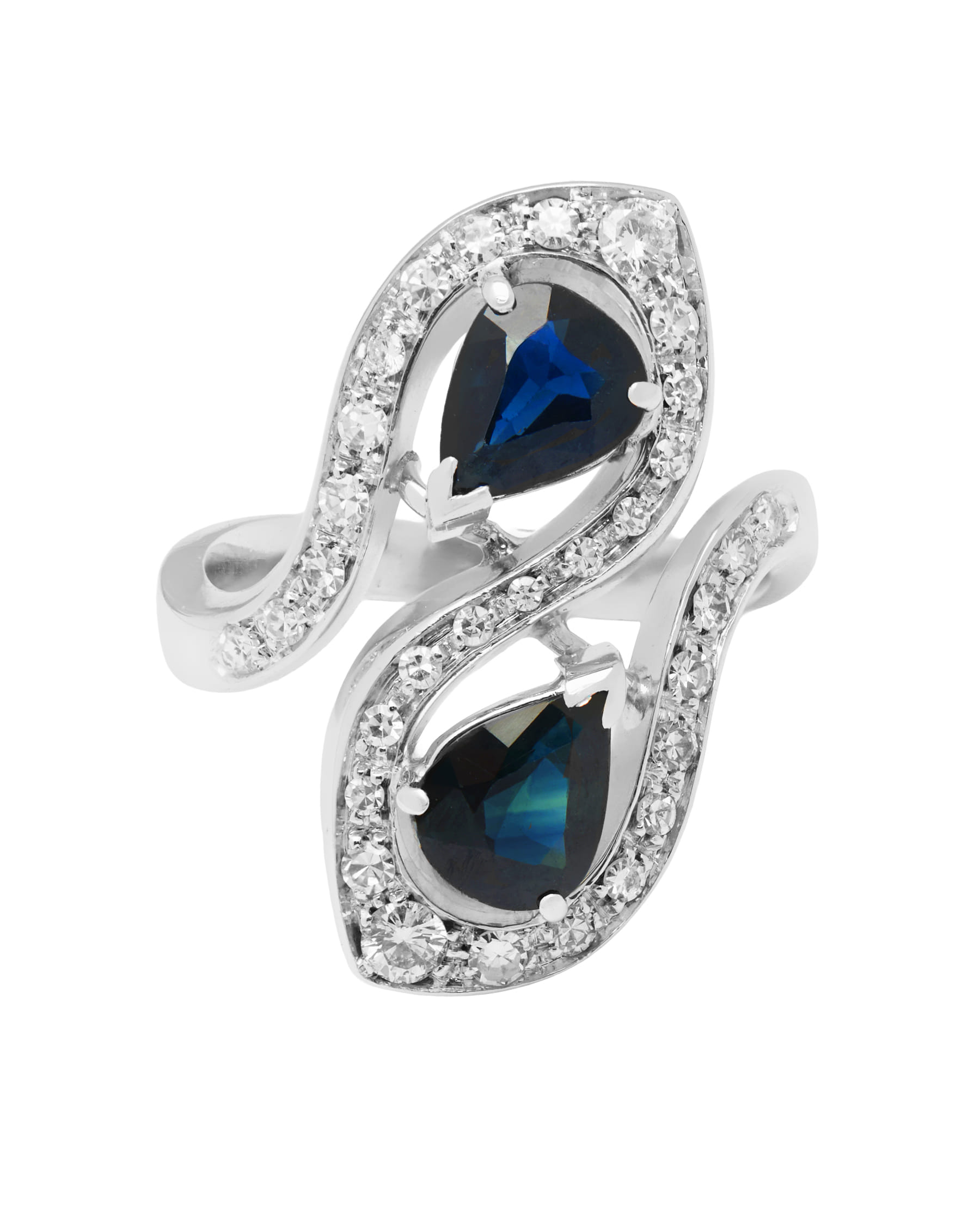 Anello contrarie a goccia con zaffiri e diamanti