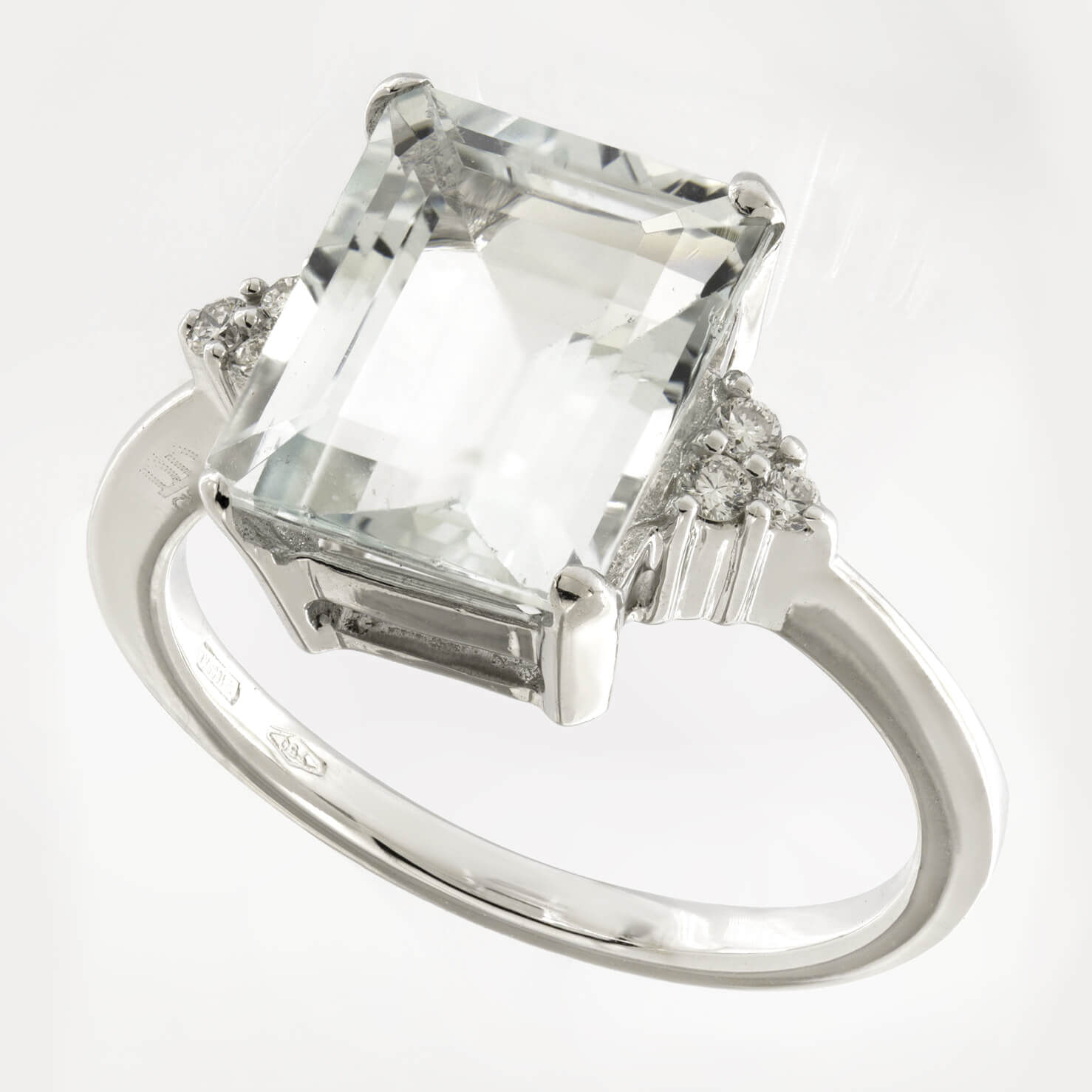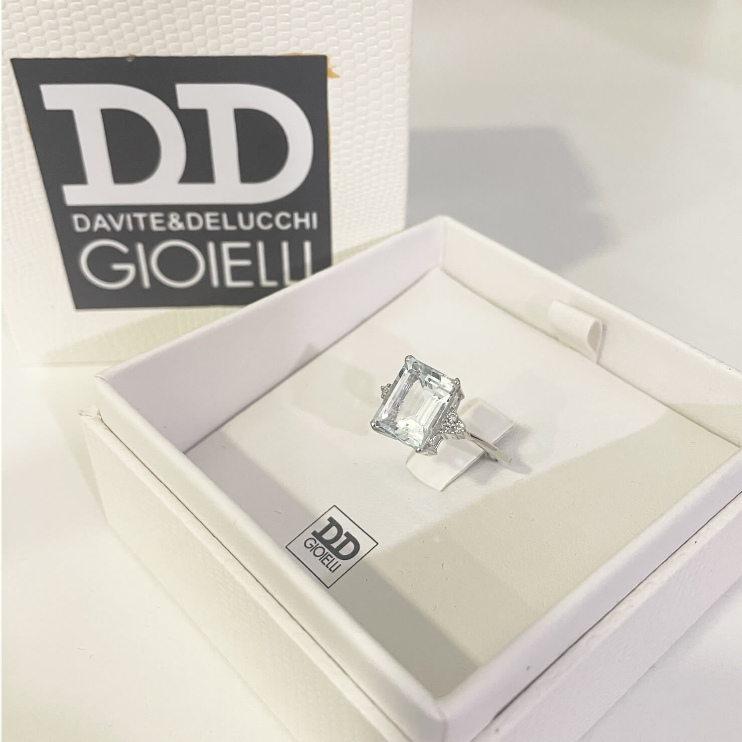 Anello D&D in oro bianco diamanti round 0,06ct e acquamarina 4ct