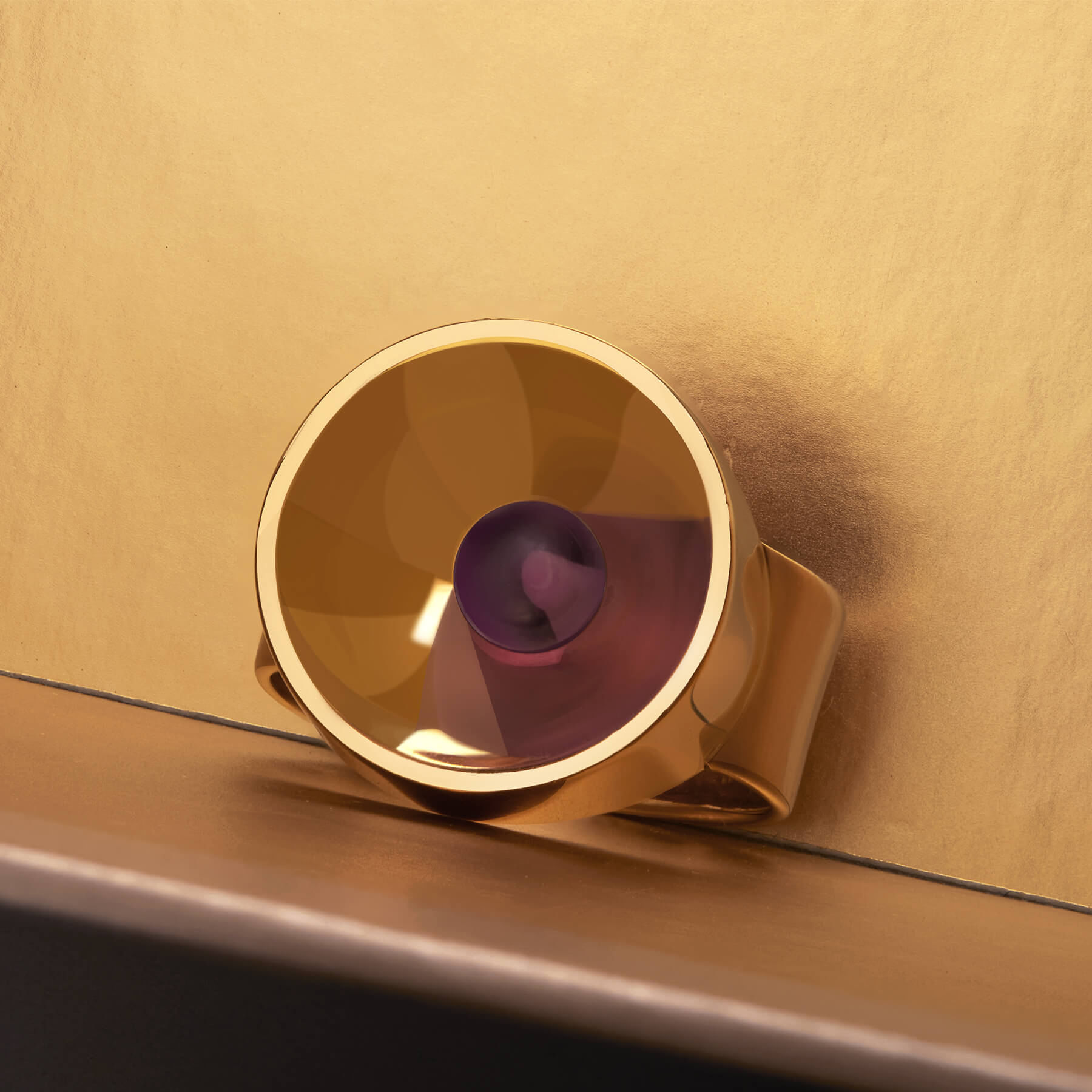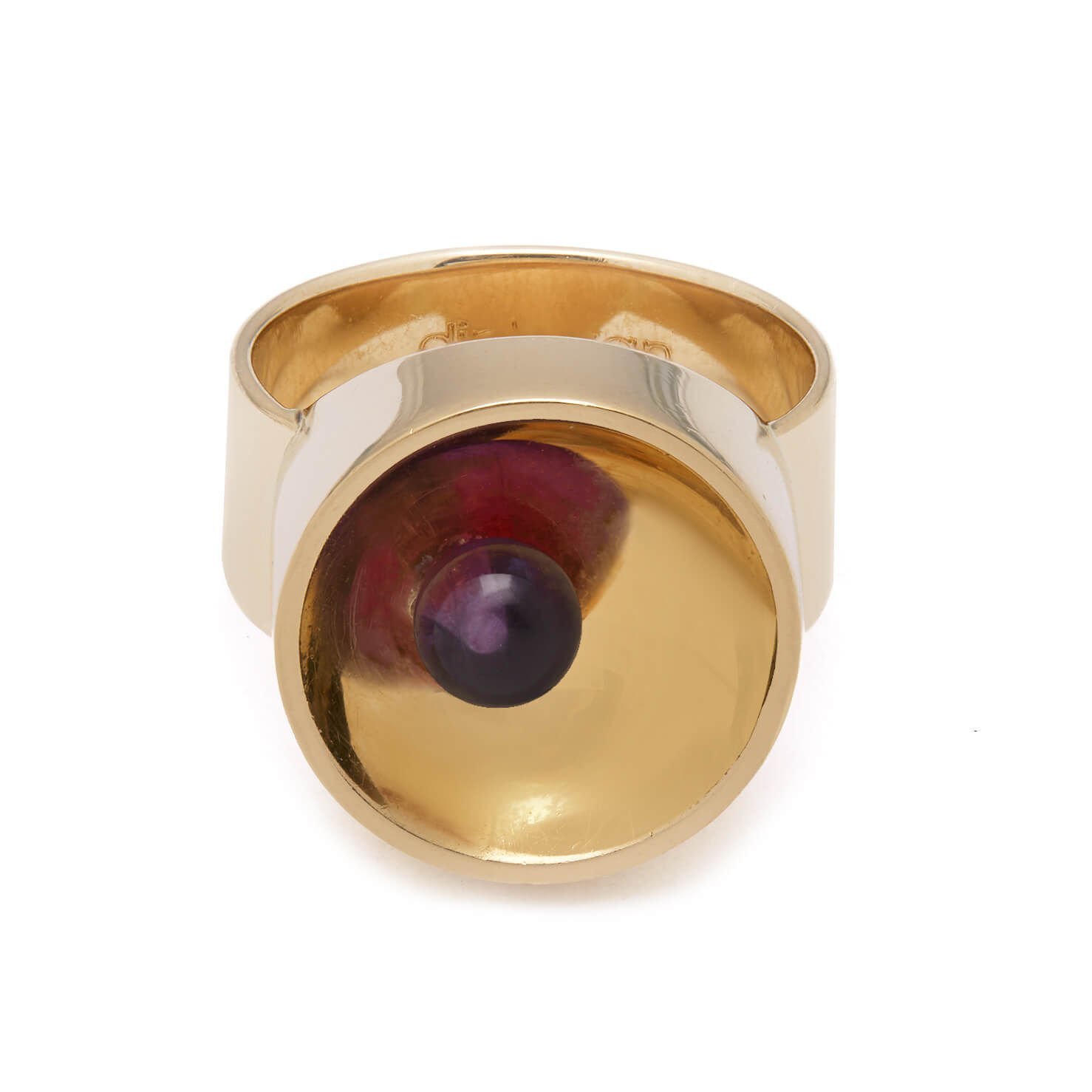 Anello Dinh Van collezione Osmosi realizzato in oro giallo 18kt ed ametista. Bolli francesi. Misura 14