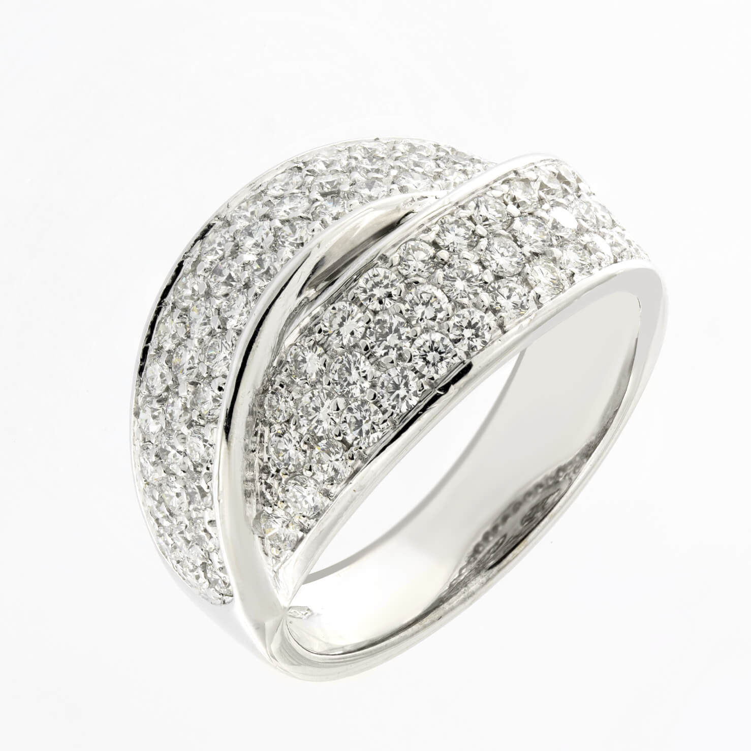 Anello doppia fascia in oro bianco e diamanti taglio round 1,72ct tot