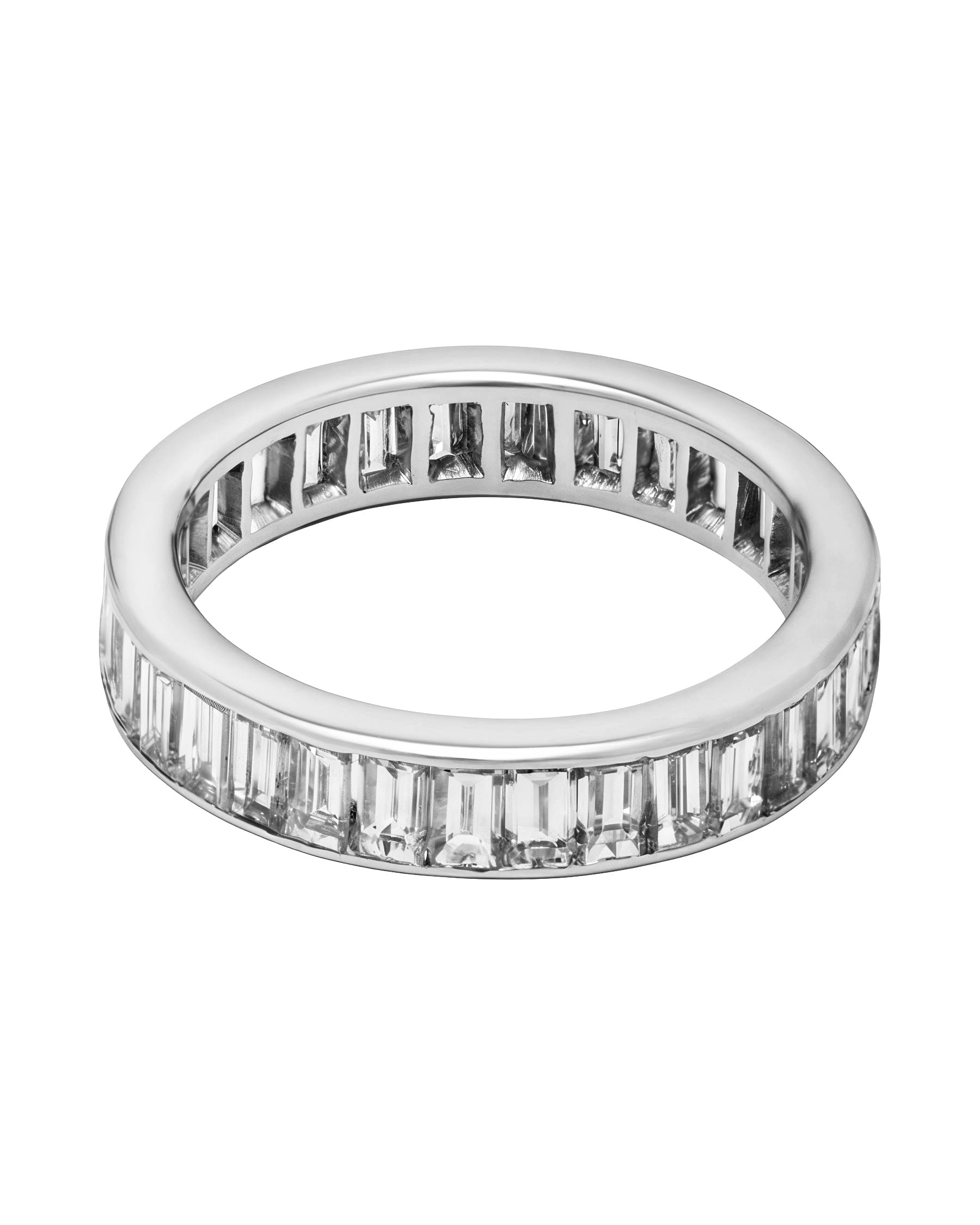 Anello eternity in oro bianco a binario con diamanti baguette