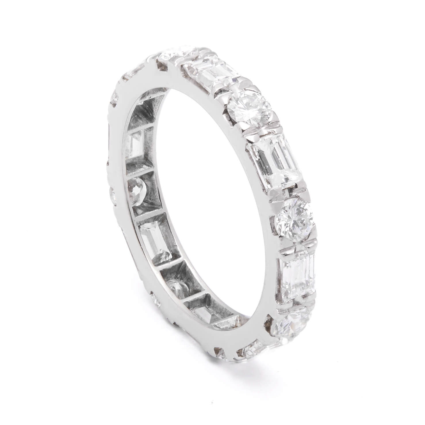 Anello eternity in oro bianco con diamanti round 0,80ct tot e diamanti taglio baguette 1,20ct tot
