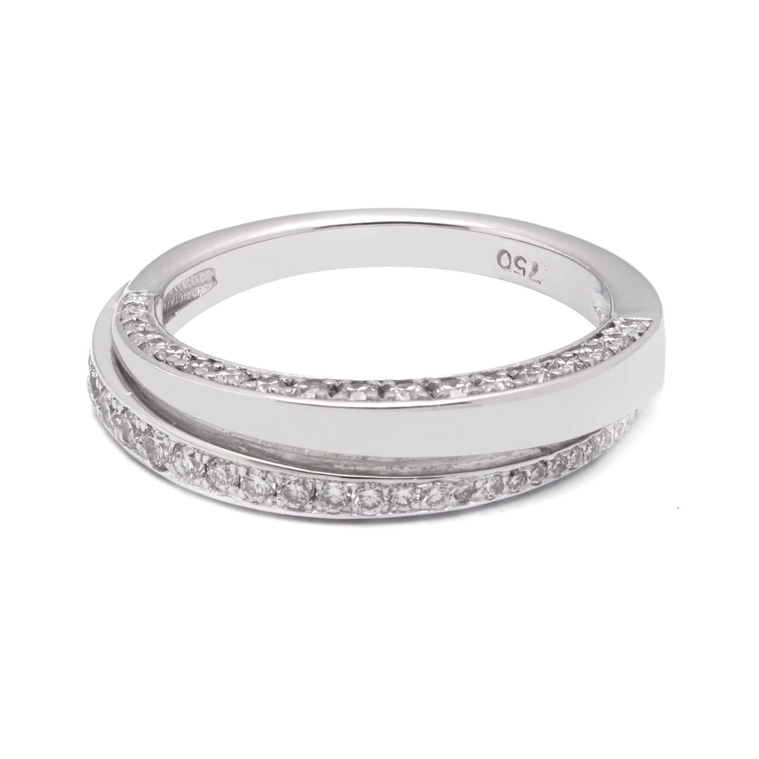 Anello fascetta contrariè in oro bianco e diamanti 0,67ct tot
