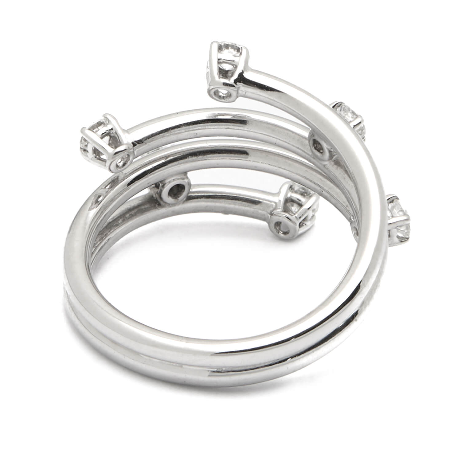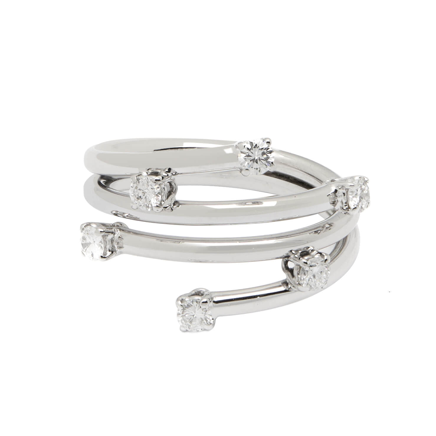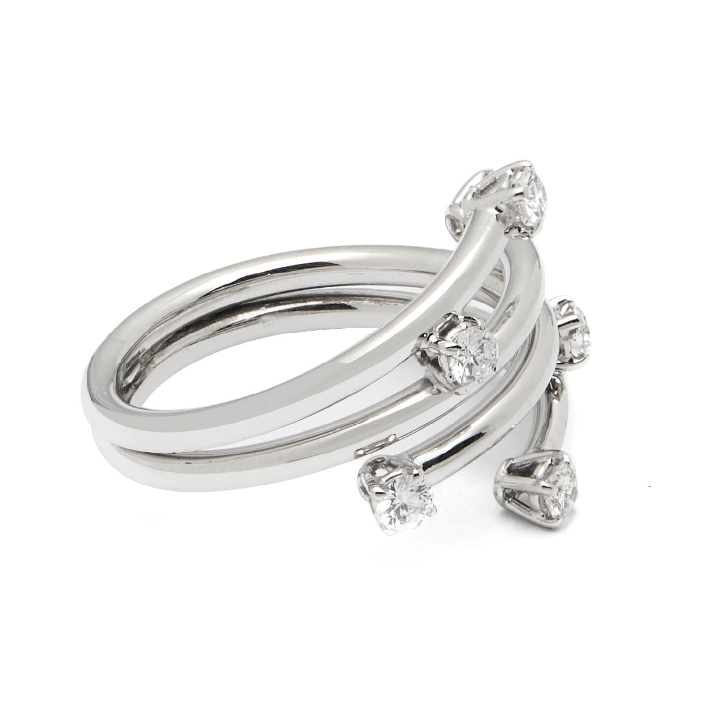 Anello fascia 4 fili in oro bianco e diamanti
