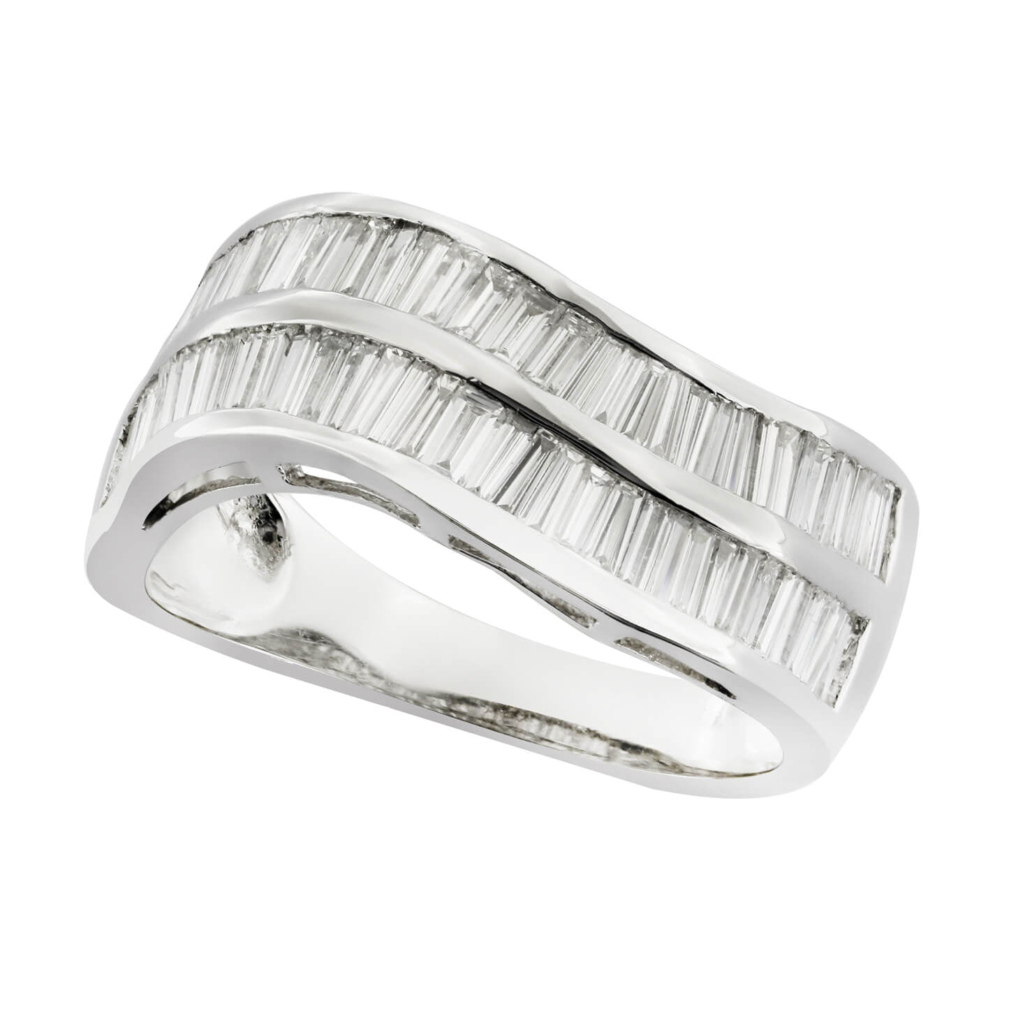 Anello fascia in oro bianco e diamanti taglio baguette 2ct tot