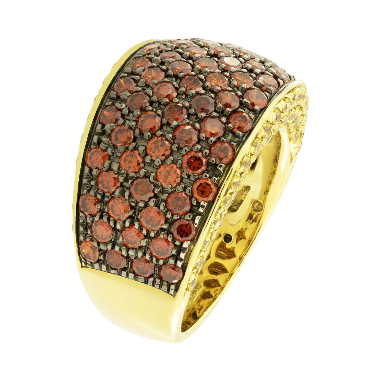 Anello fascia realizzato in oro giallo 18kt con zaffiri arancio e gialli 2,50ct tot. Misura 15