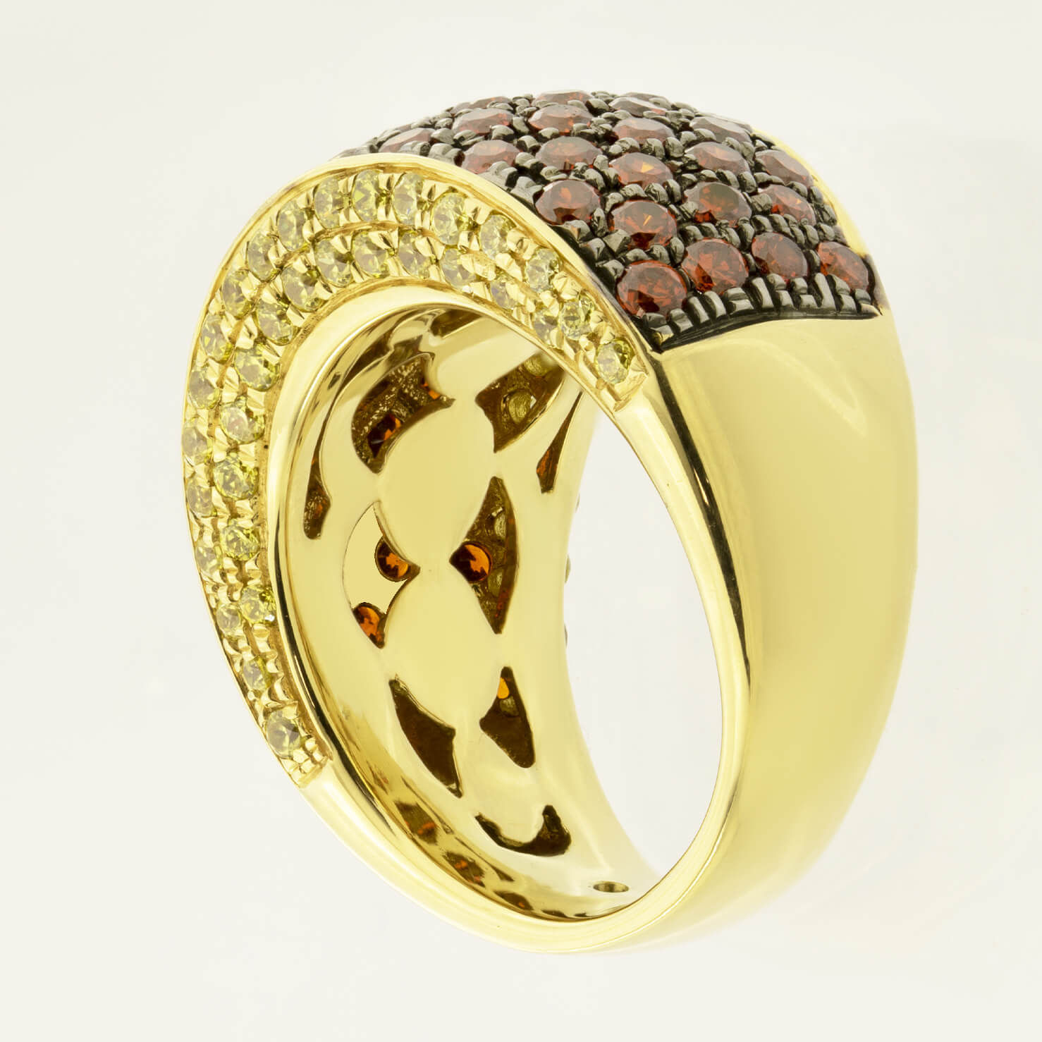 Anello fascia in oro giallo con zaffiri arancioni e giallo 2,50ct tot
