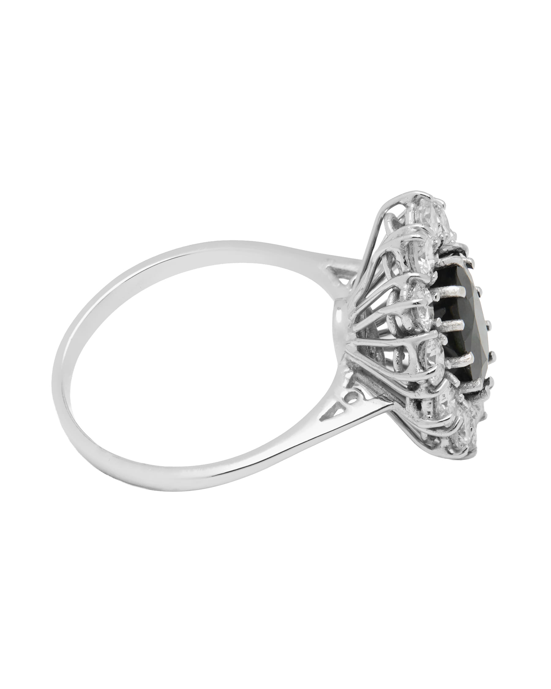 Al centro risplende uno zaffiro da 3 carati, celebre per il suo colore profondo ed intenso.