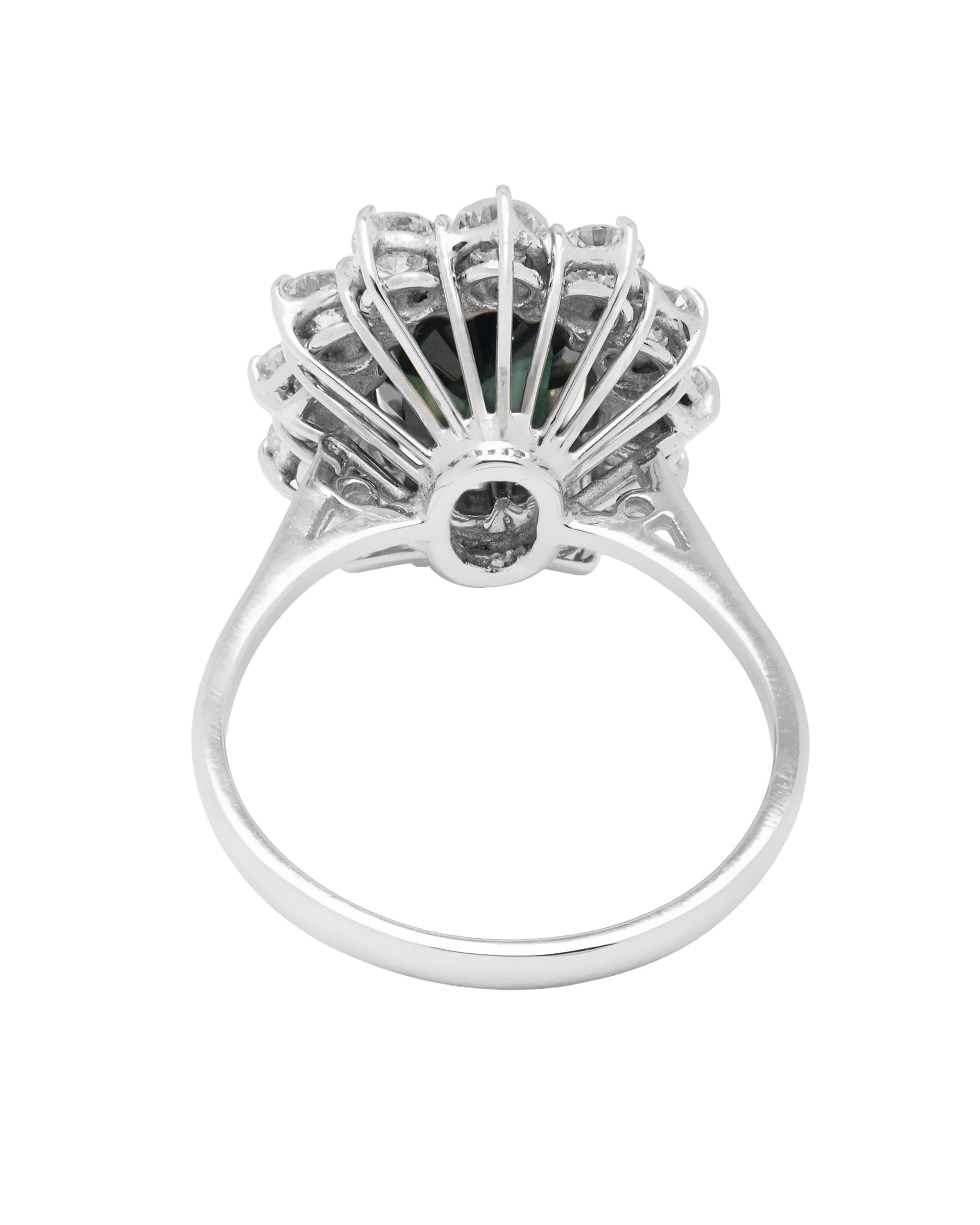 Anello fiore con zaffiro centrale e diamanti