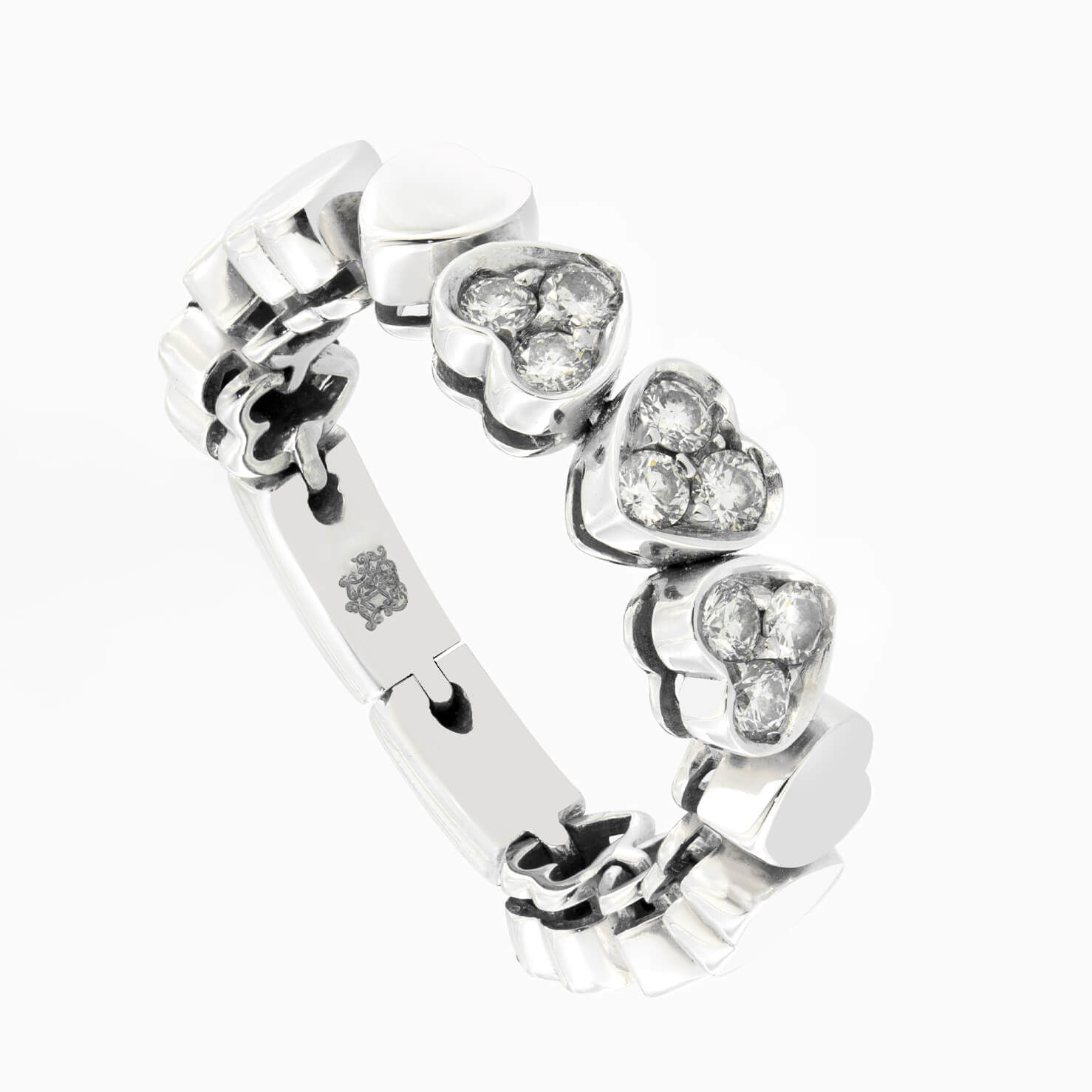 Anello cuori Iacopini realizzato in oro bianco 18kt e diamanti round 0,27ct tot.Con scatola Iacopini.Misura 11