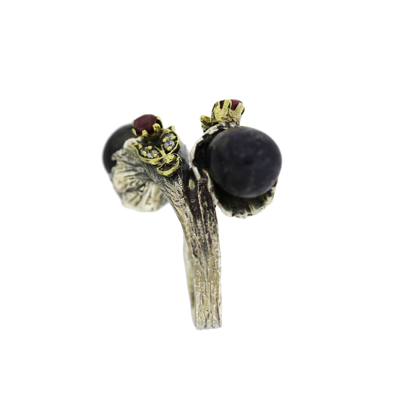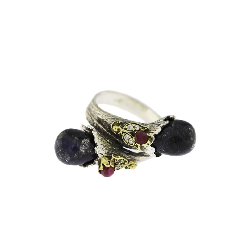 Anello in argento 925% con sodalite ,rubini e zaffiri trasparenti