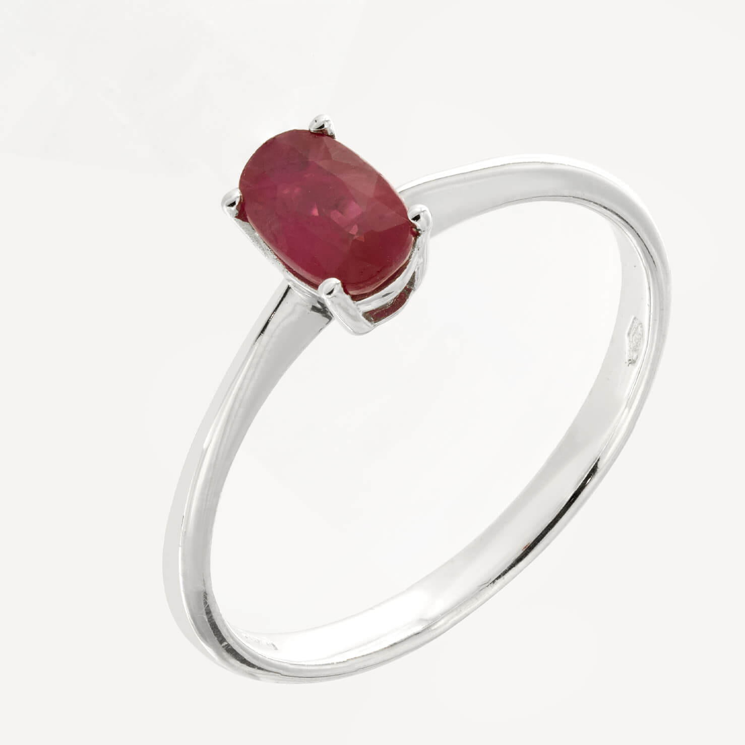 Anello realizzato in oro bianco 18kt e rubino taglio ovale 0,60ct. L’articolo è una nuova creazione