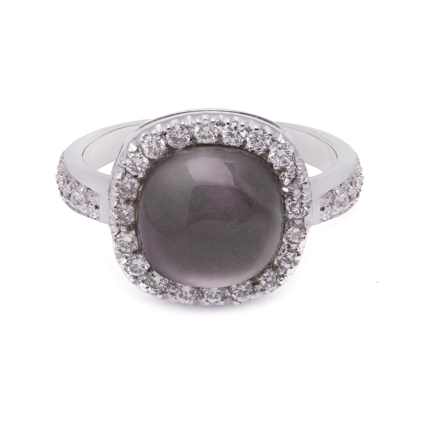 Anello in oro bianco con diamanti 0,34ct tot ,madreperla e quarzo citrino