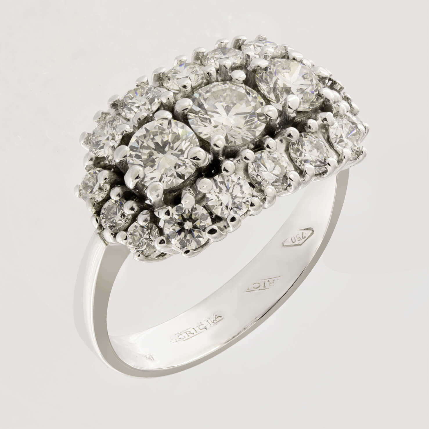 Anello realizzato in oro bianco 18kt e diamanti taglio round 1,93ct tot. Misura 13