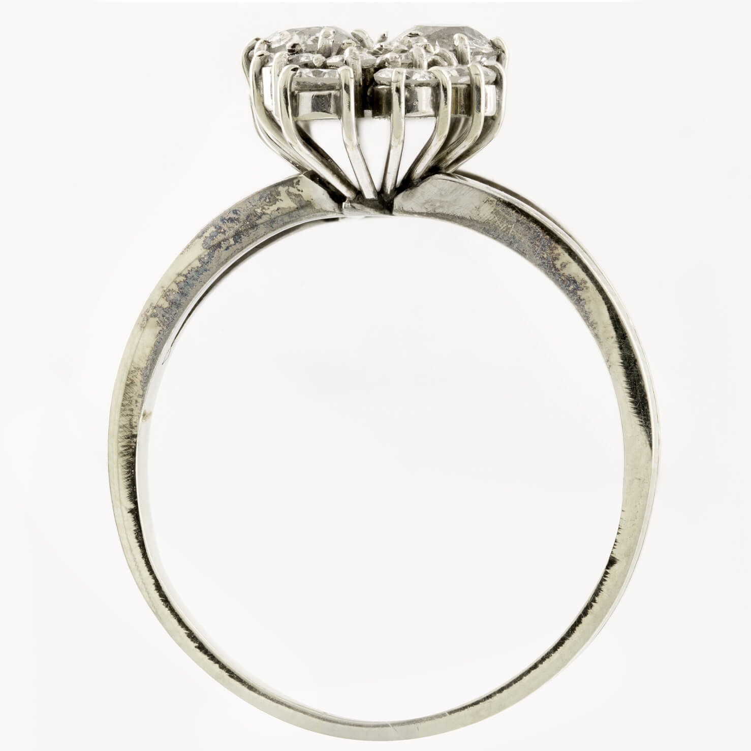 Anello realizzato in oro bianco 18kt con diamanti taglio antico 0,66ct tot e diamanti taglio round 0,96ct tot. Misura 19