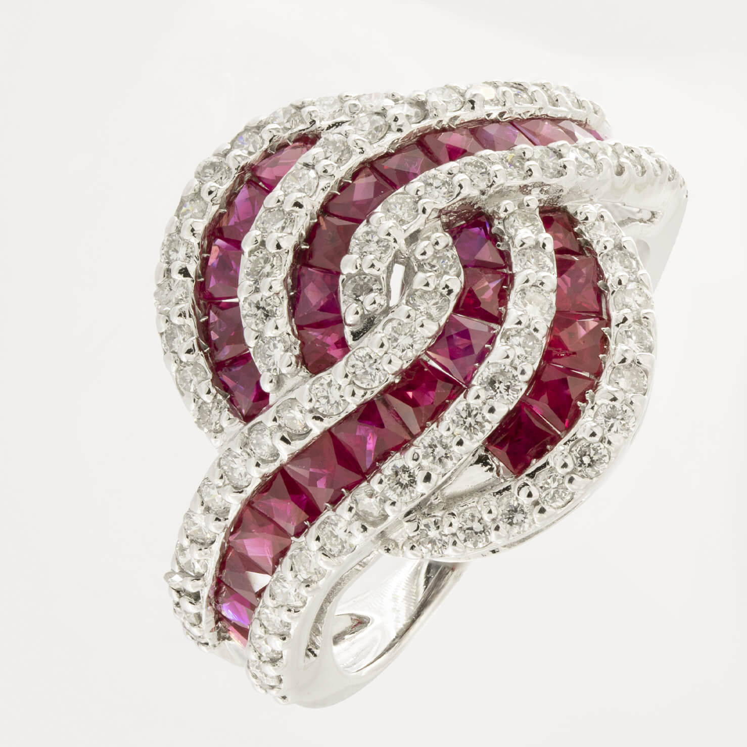 Anello in oro bianco con rubini 2,30ct tot e diamanti 0,64ct tot