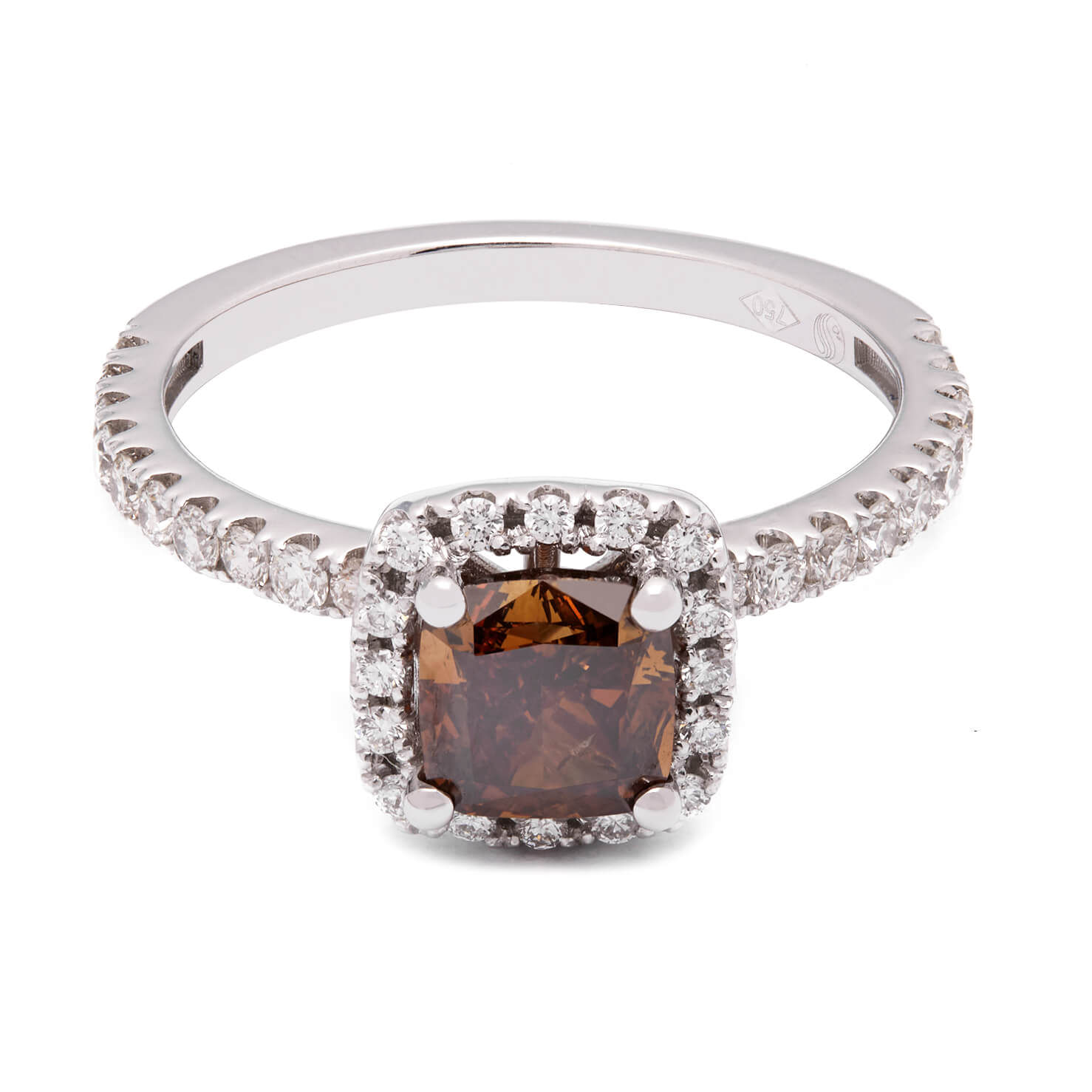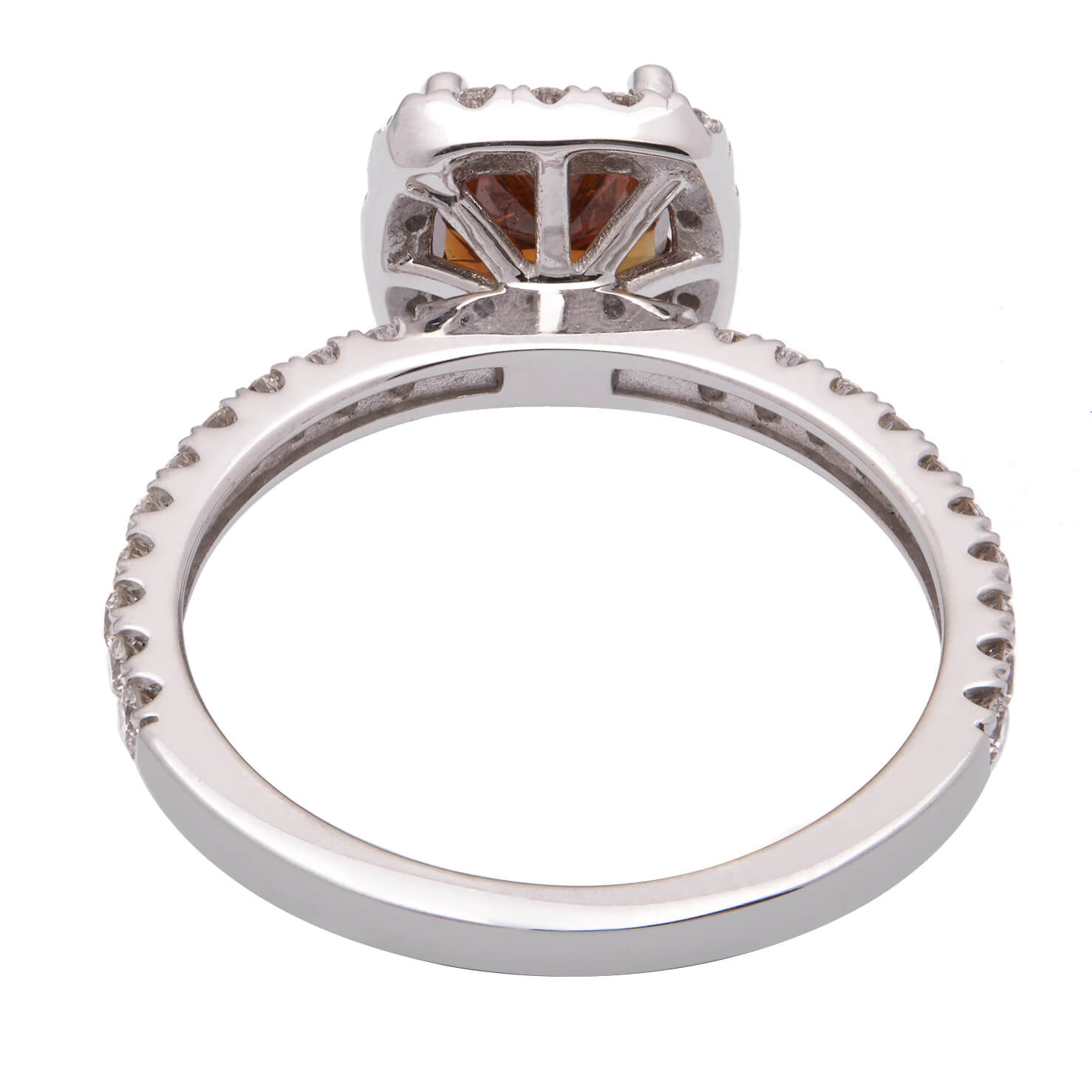 Anello in oro bianco e diamanti con diamante centrale Fancy Vivid Orange