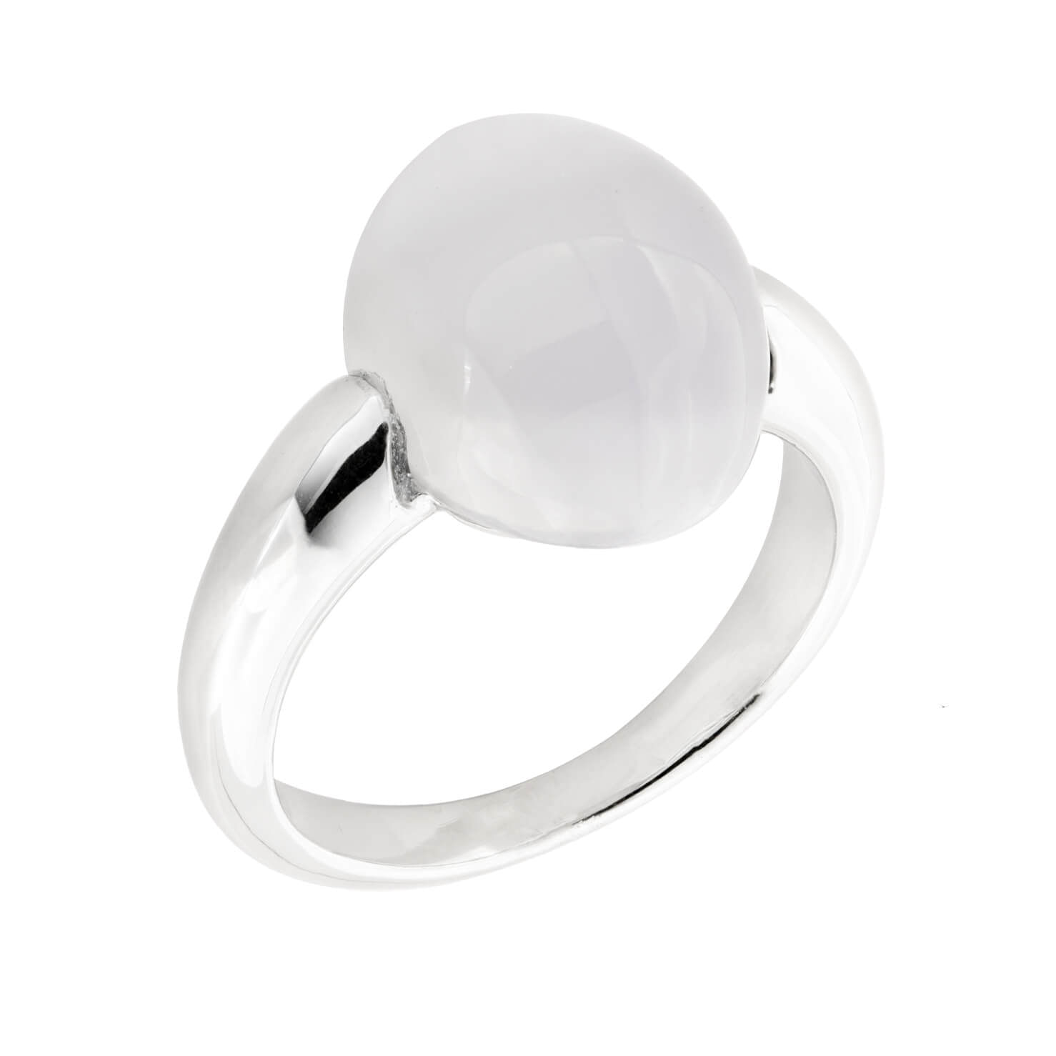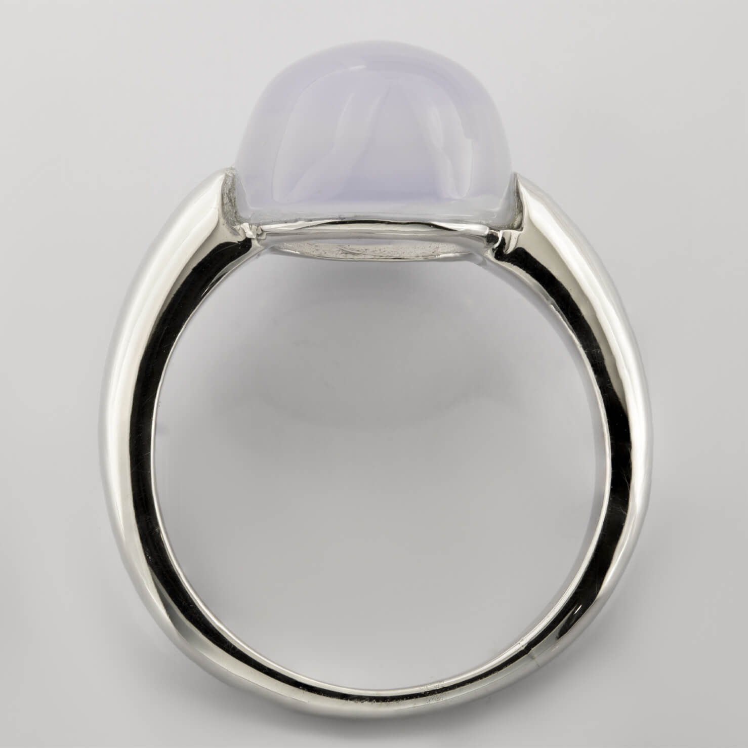 Anello realizzato in oro bianco con pietra di luna. Misura 13