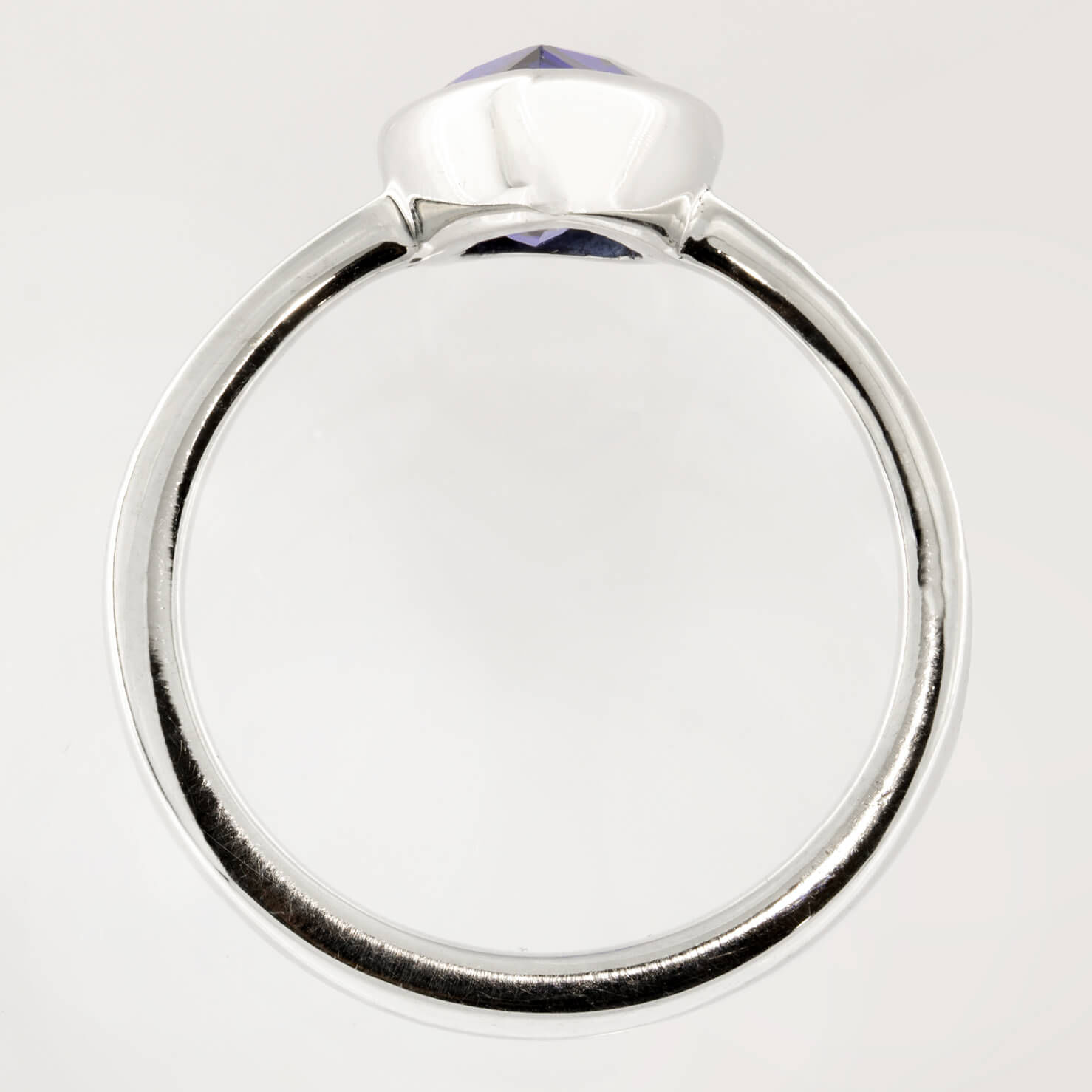 Anello realizzato in oro bianco 18kt con zaffiro Ceylon scaldato. Misura 5. Certificato IGN
