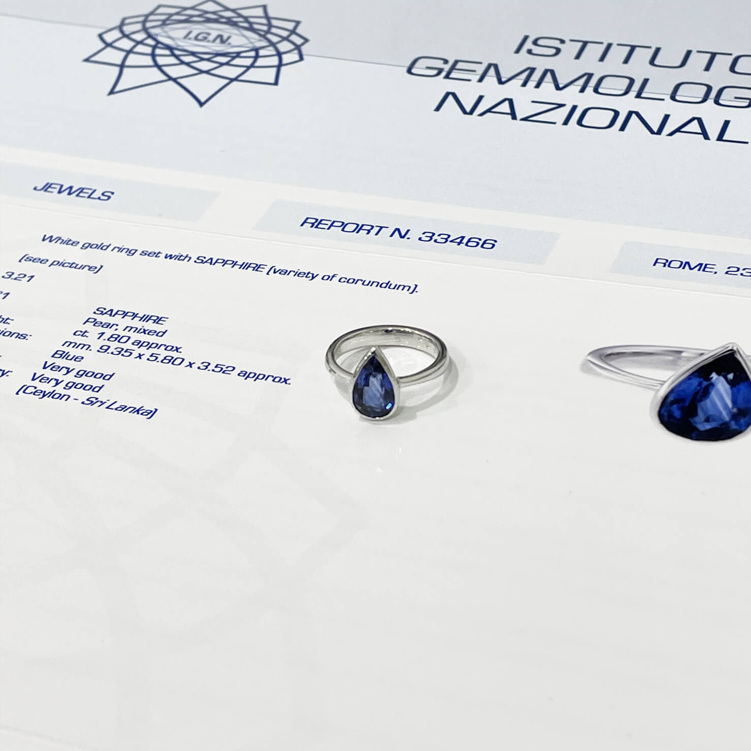 Anello in oro bianco e zaffiro 1,80ct con certificato IGN