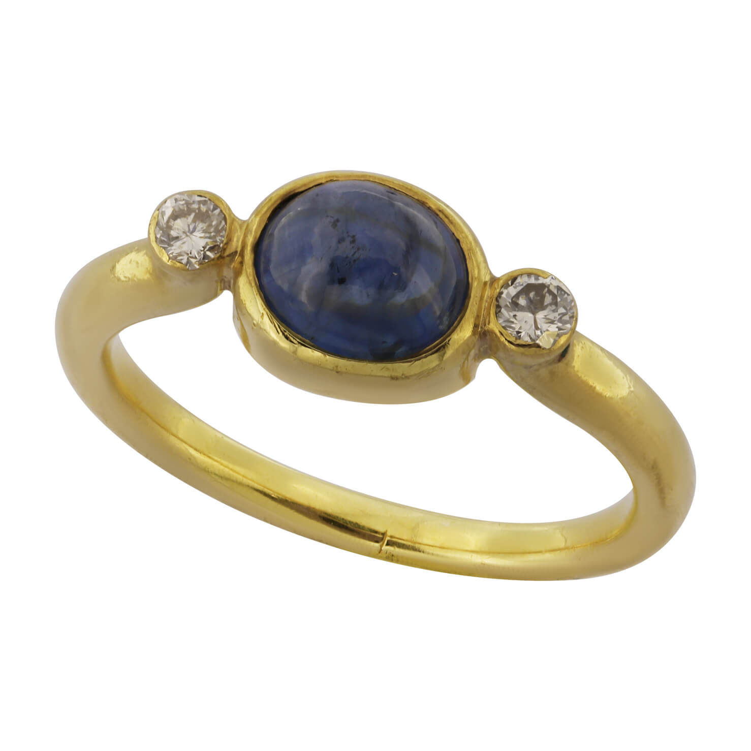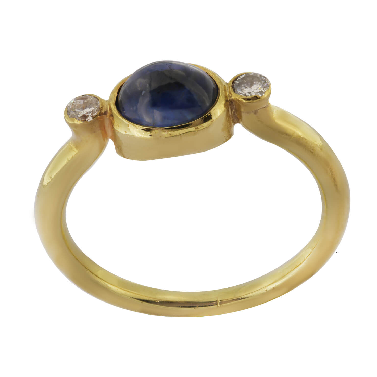 Anello in oro giallo con zaffiro cabochon 1,70 ct e diamanti round 0,14ct tot
