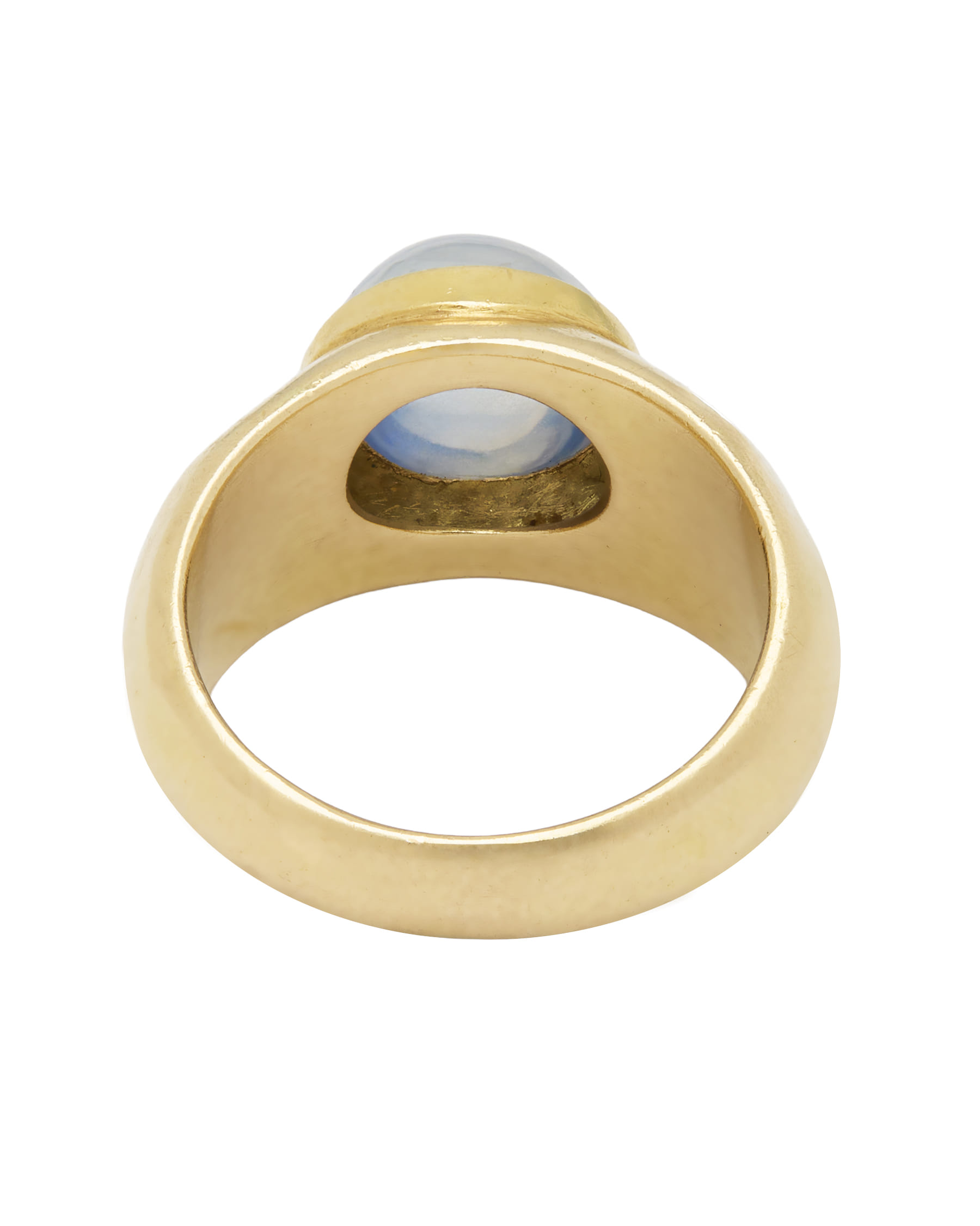 Il taglio cabochon esalta la profondità del colore e la purezza della gemma preziosa.