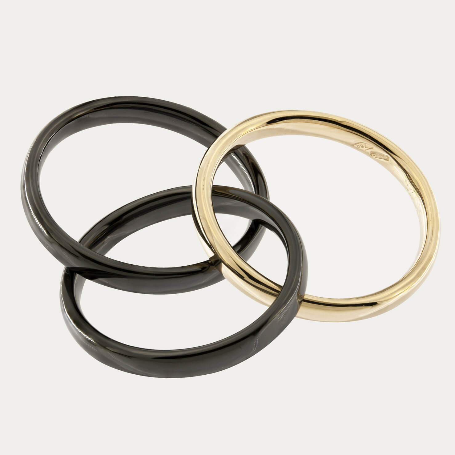Anello realizzato in oro rosa 18kt e ceramica nera. Misura 13.5