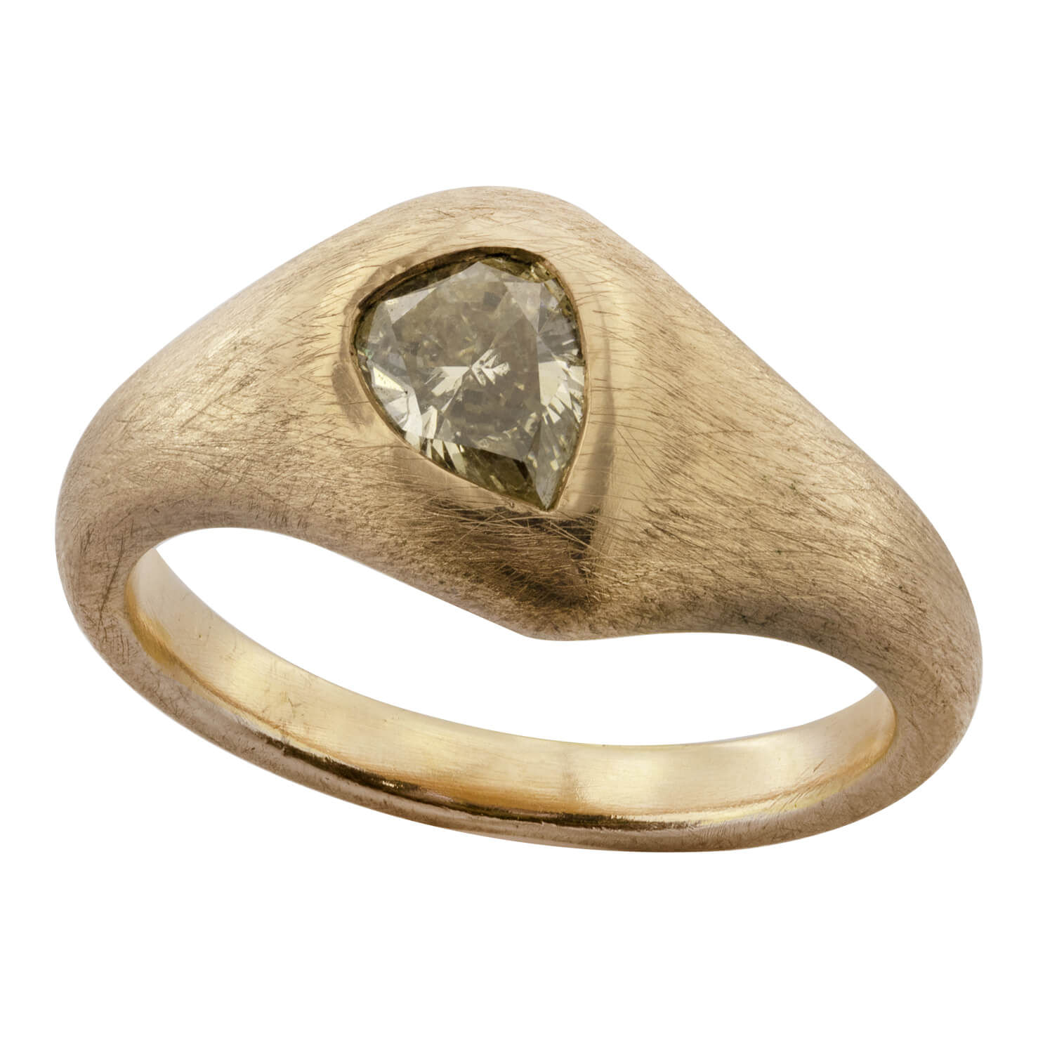 Anello realizzato in oro rosa 18kt con diamante giallo taglio goccia 0,70ct.Misura 13