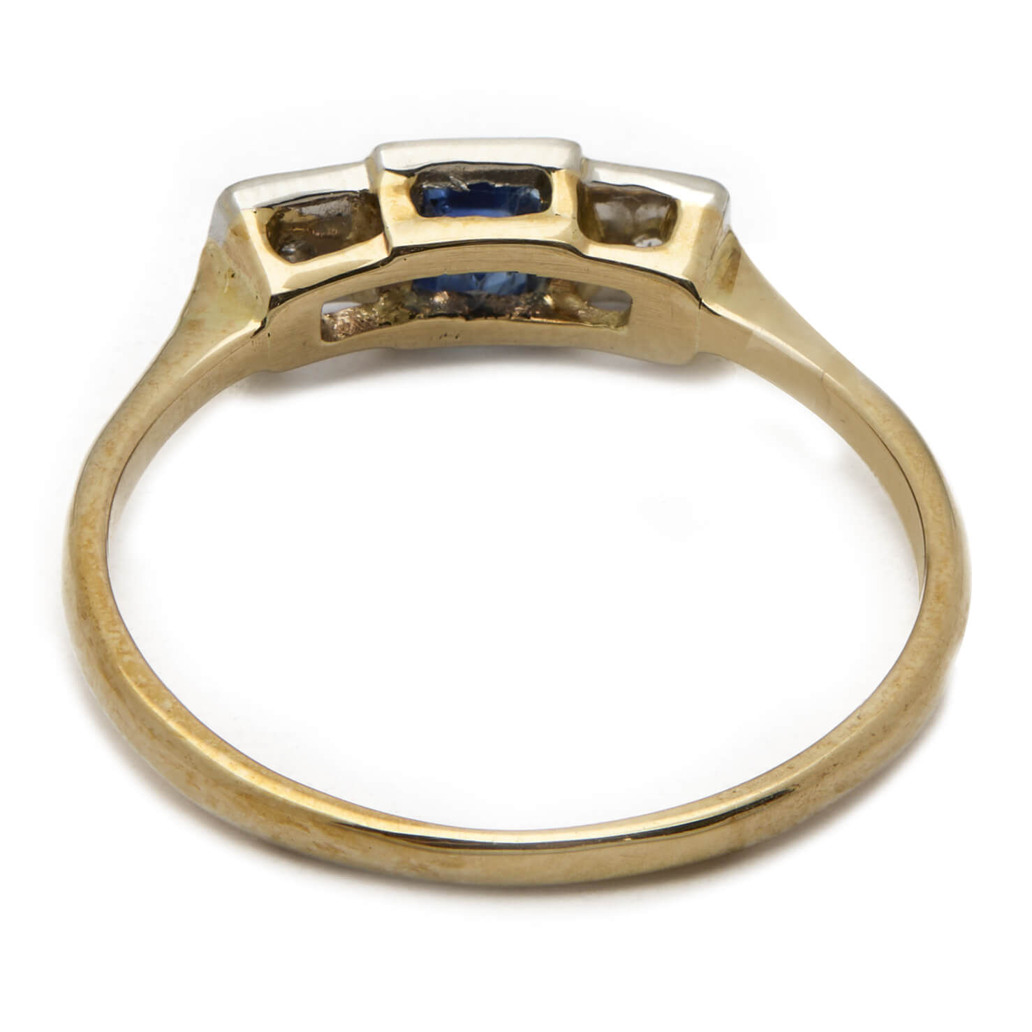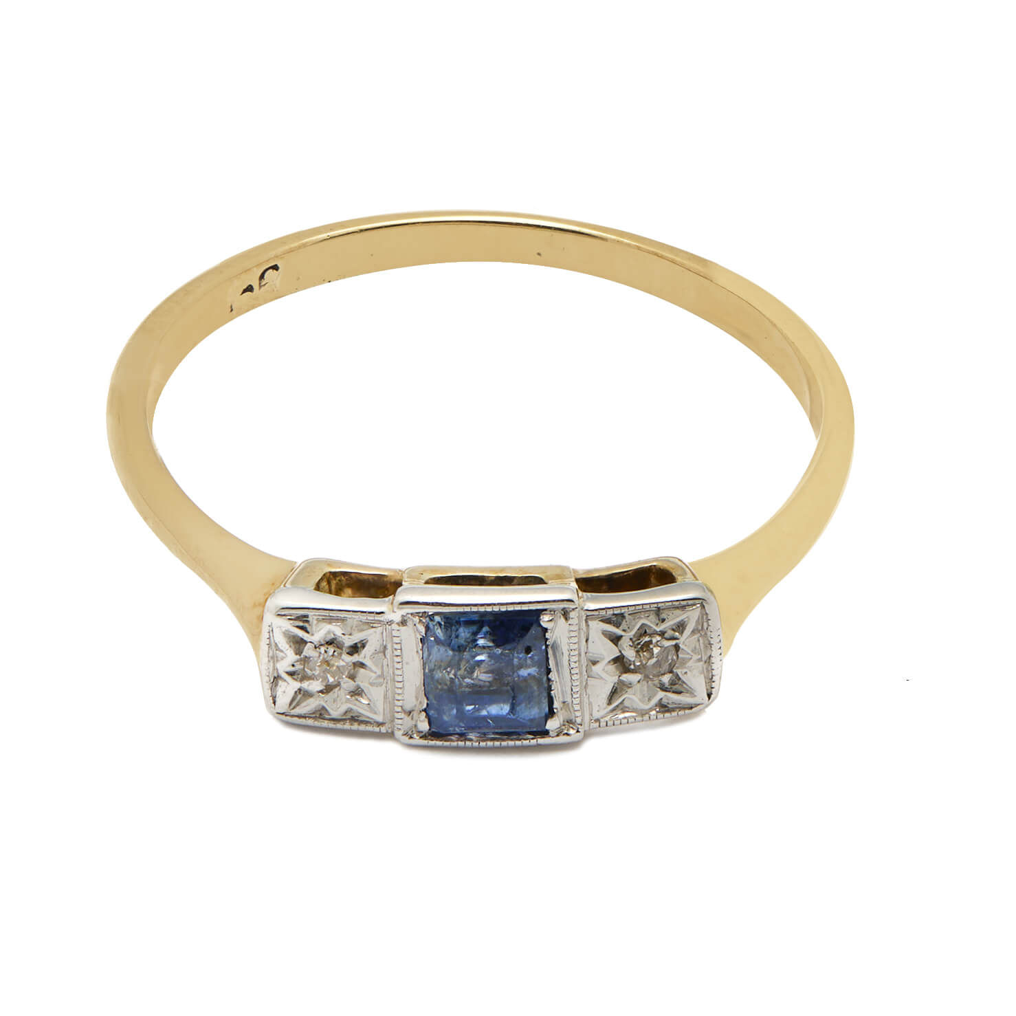 Anello realizzato in oro giallo 9kt e argento con zaffiro quadrato. Misura 14.5