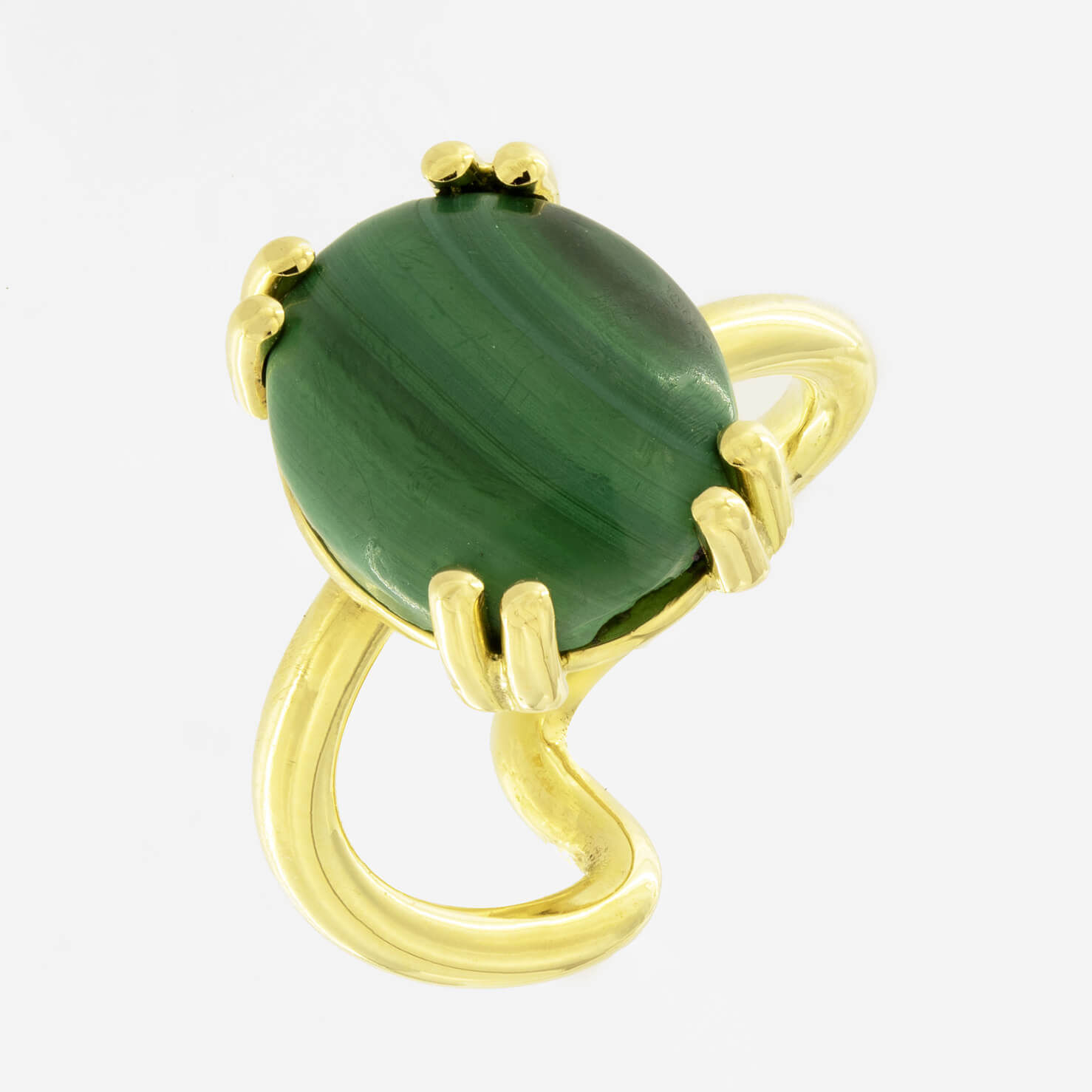 Anello realizzato in oro giallo 18kt e malachite. Misura 7