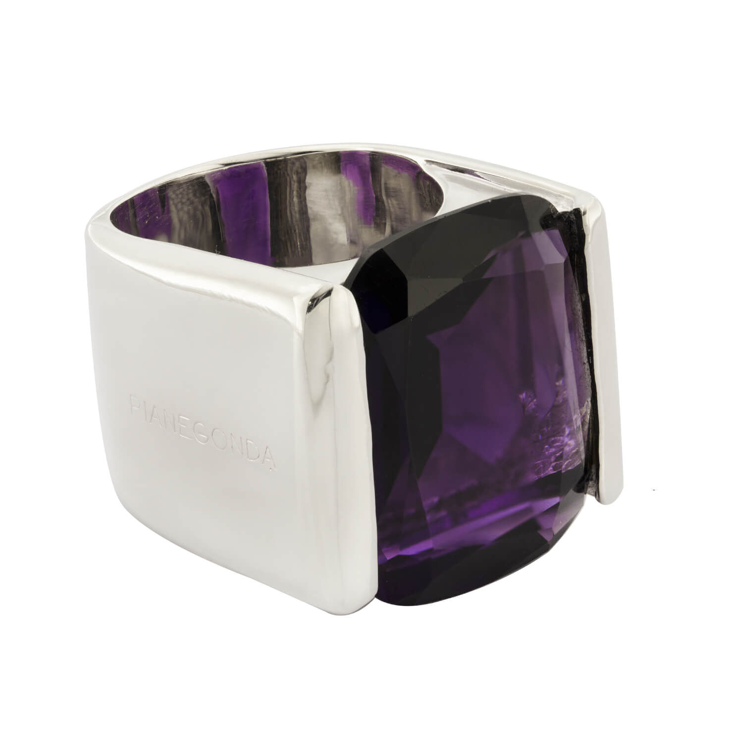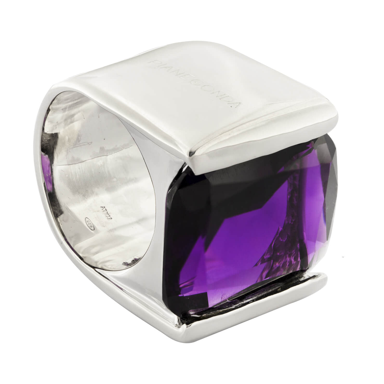 Anello Pianegonda realizzato in argento 925% con ametista. Misura 16. Pochette Pianegonda