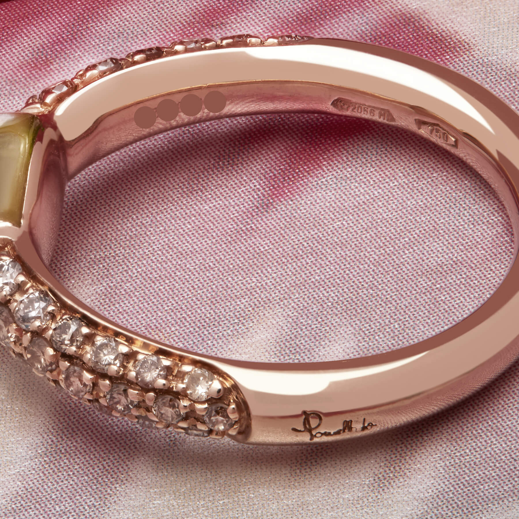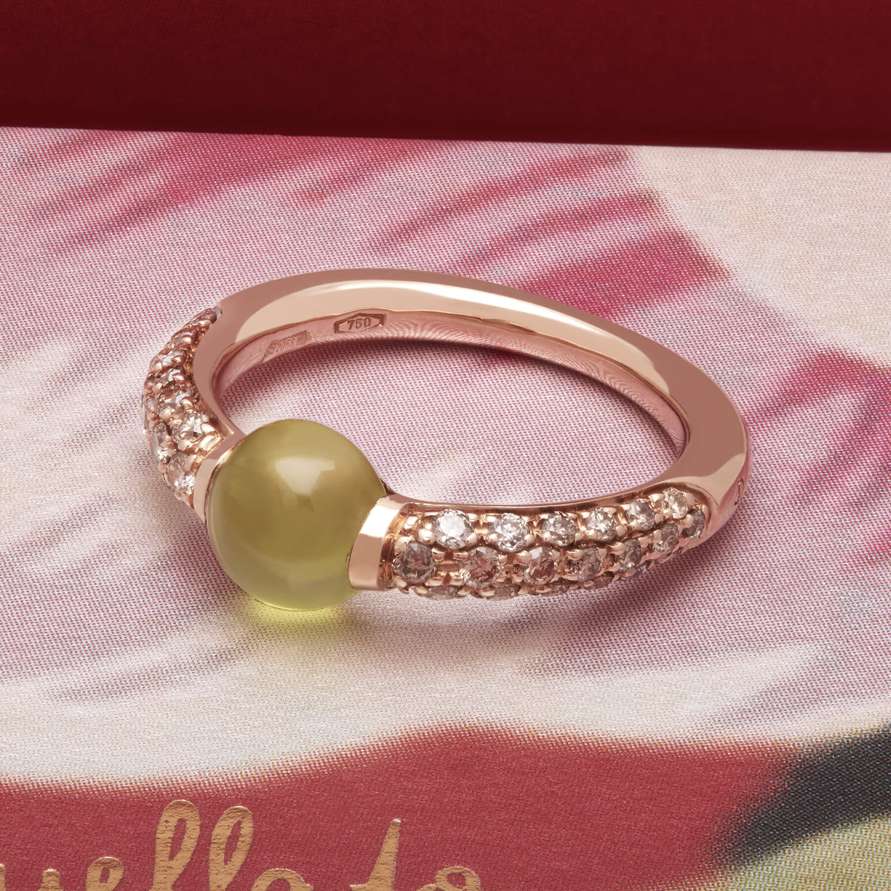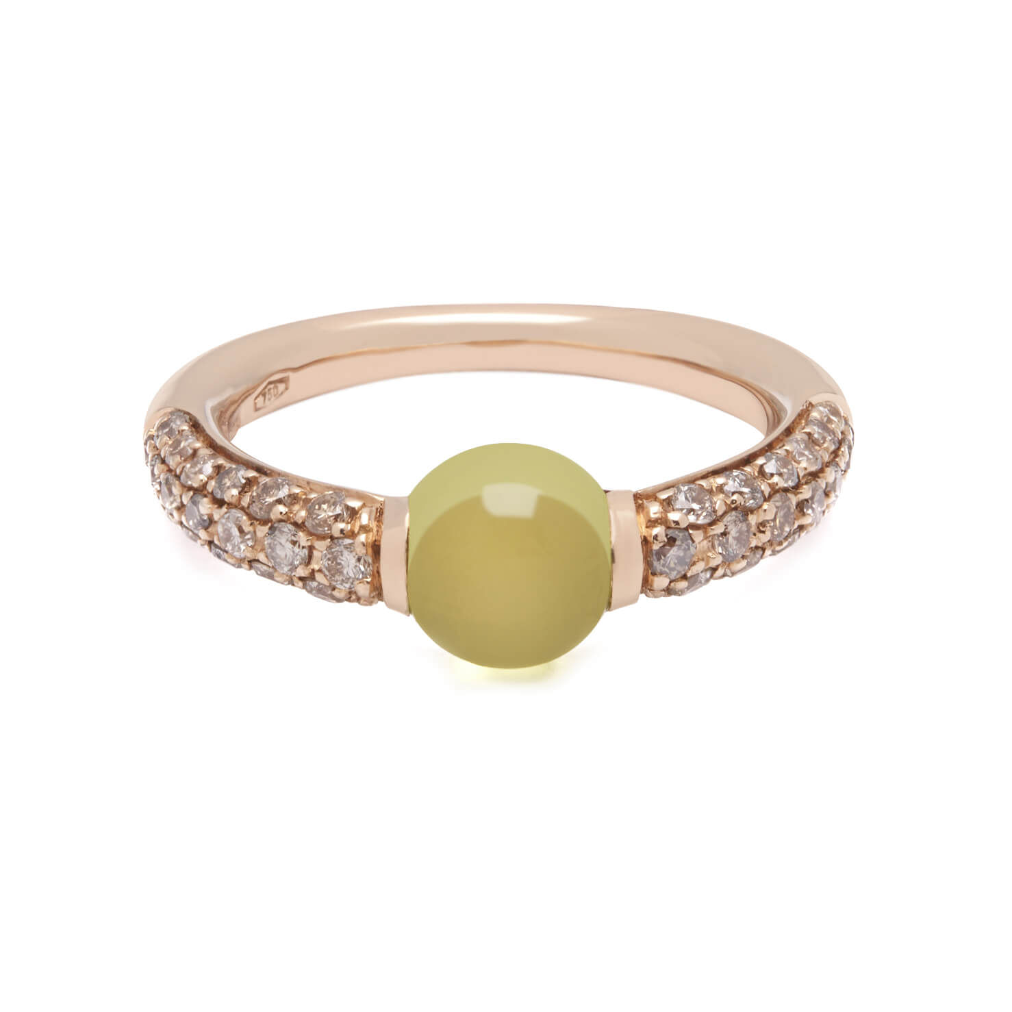 Anello Pomellato m’ama non m’ama in oro rosa con diamanti brown e peridoto centrale