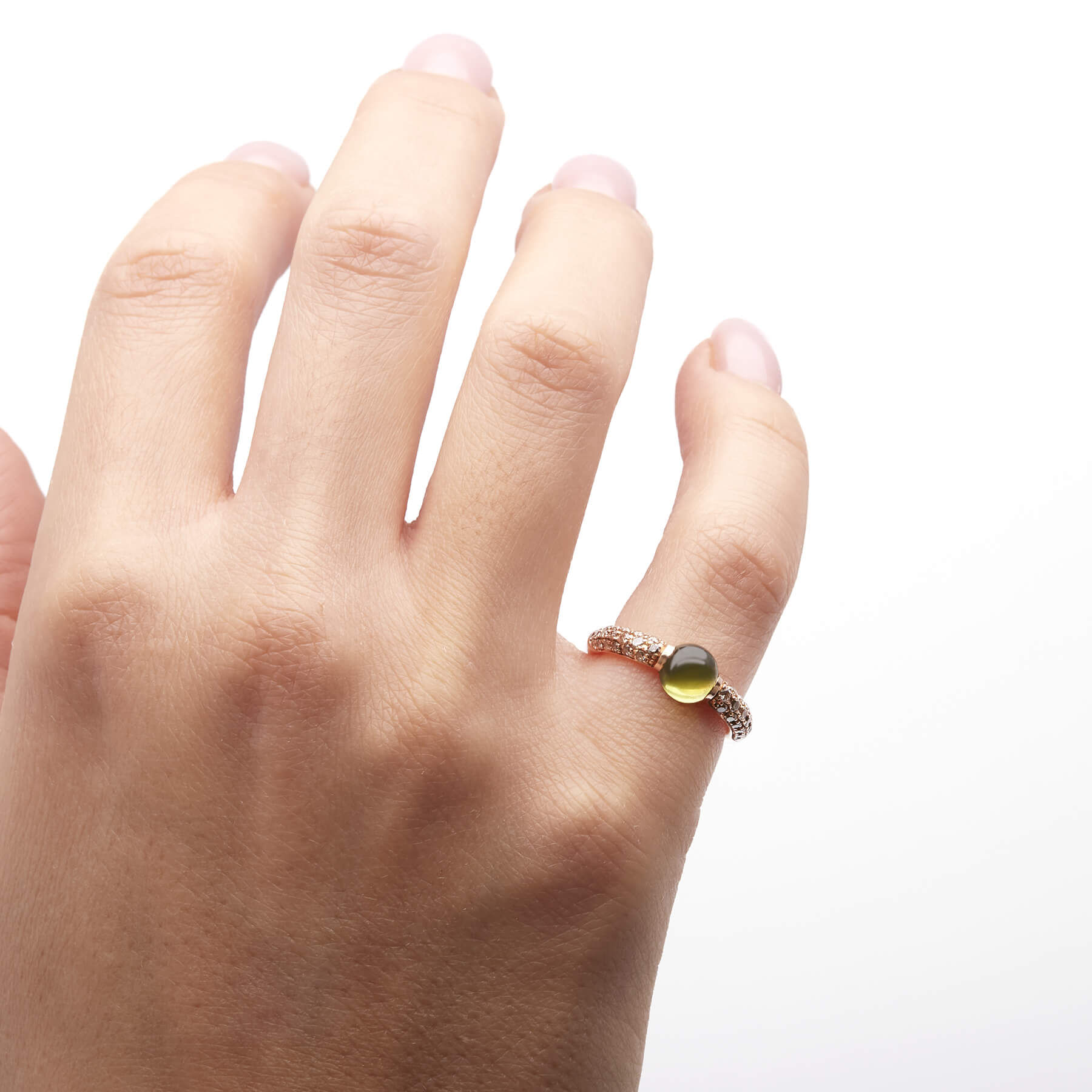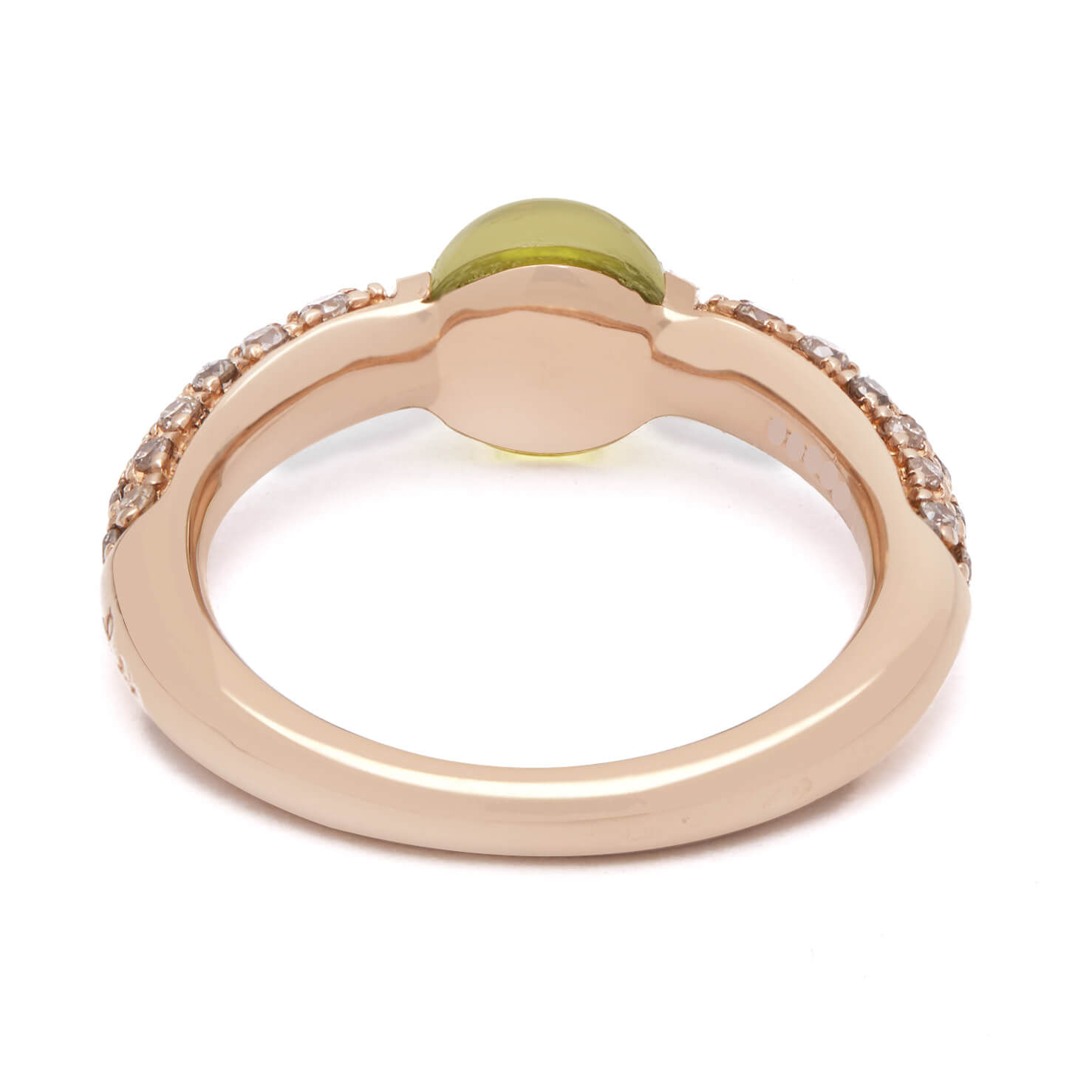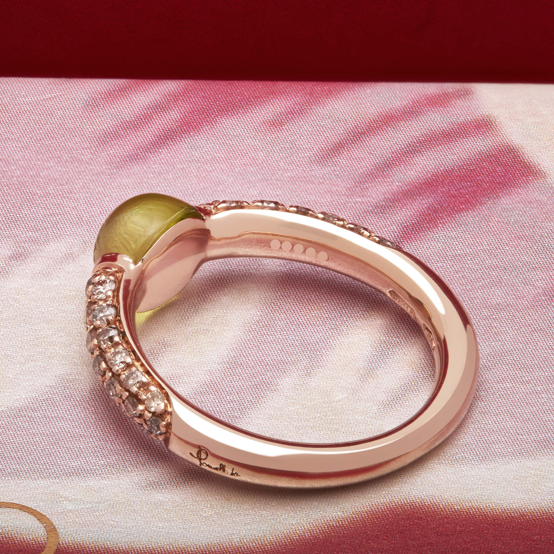 Anello Pomellato m’ama non m’ama realizzato in oro rosa 18kt con diamanti brown 0,36ct tot e peridoto centrale cabochon 1,60ct. Misura 8.5