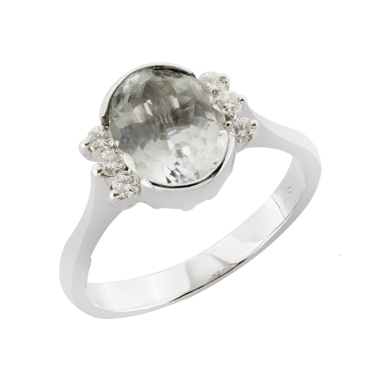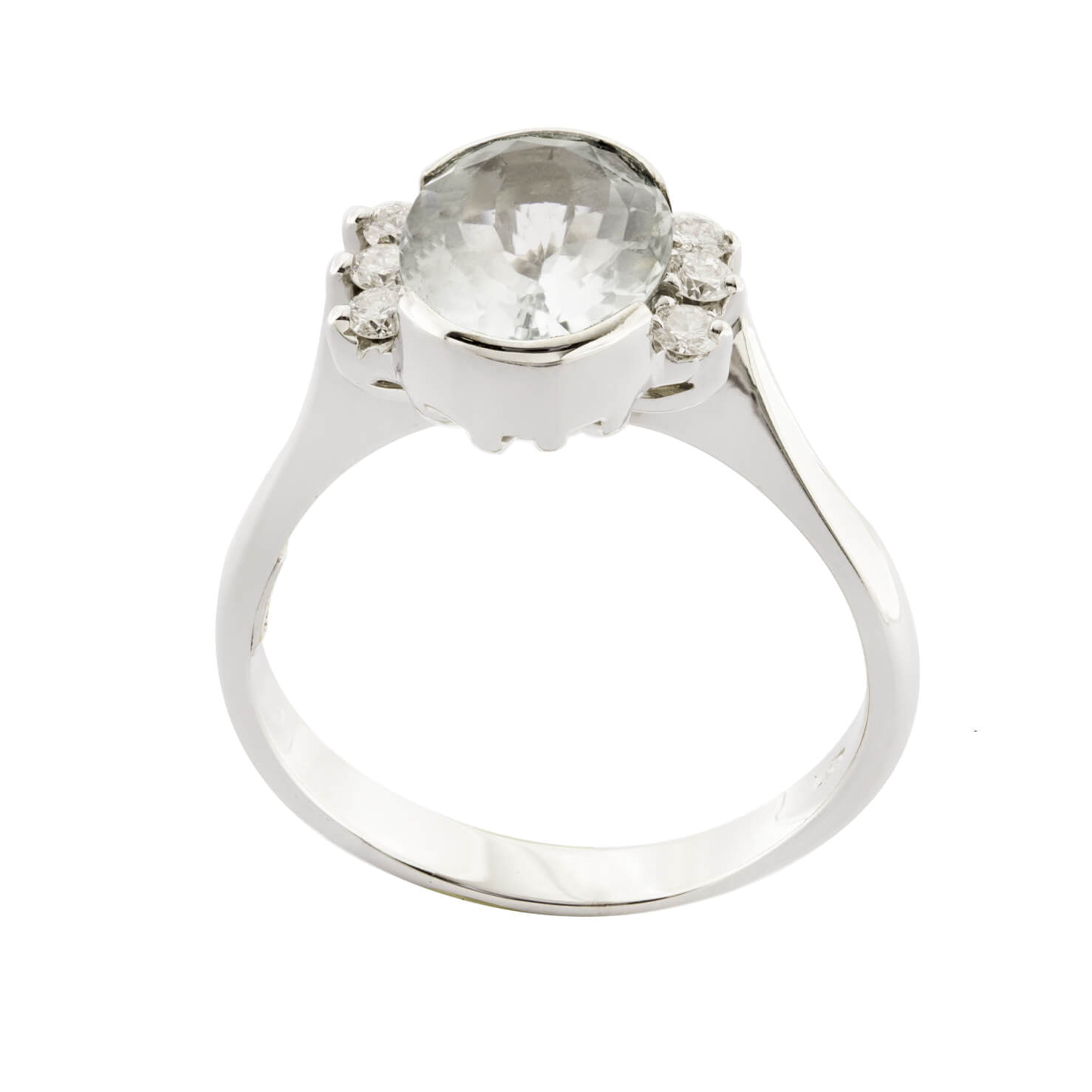 Anello Re Carlo con acquamarina 2,40ct e diamanti taglio round 0,18ct tot
