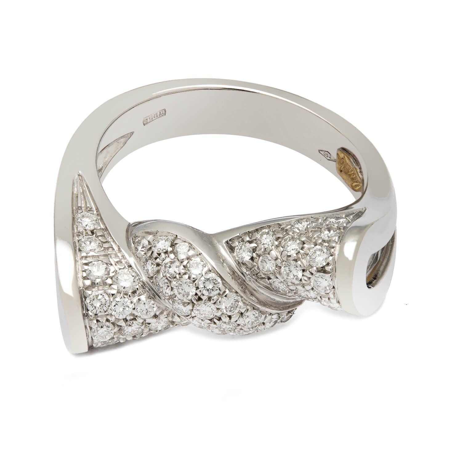 Anello ReCarlo fiocco realizzato in oro bianco 18kt e diamanti taglio round 0,55ct tot. Misura 14