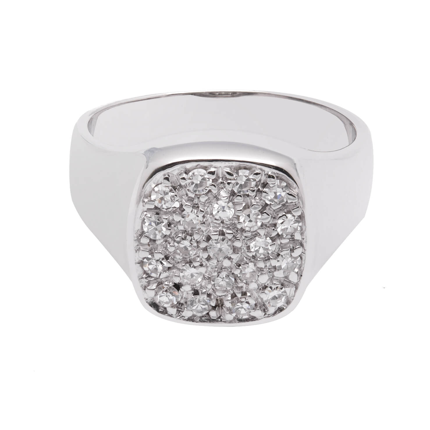 Anello sigillo realizzato in oro bianco 18kt e diamanti single cut 0,315ct. Misura 12