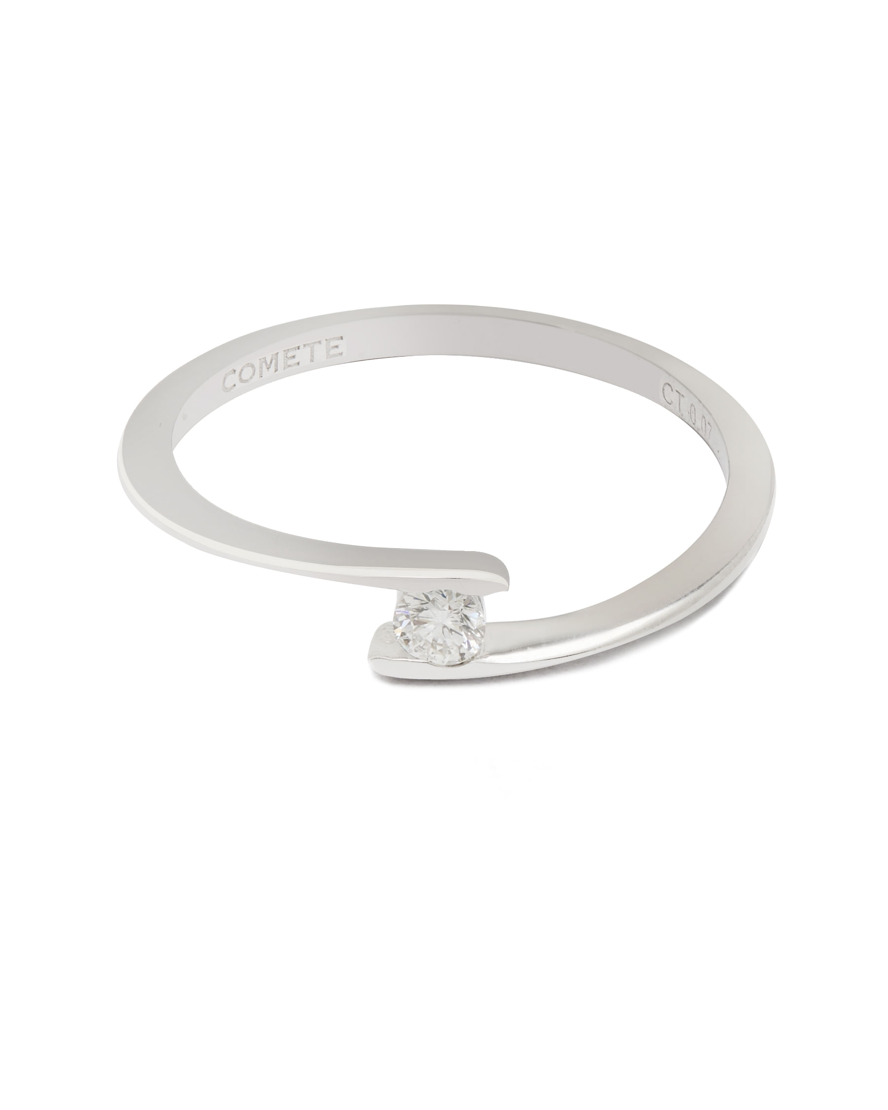 Anello solitario Comete realizzato in oro bianco 18kt con diamante taglio round 0,07ct. Misura 10,5