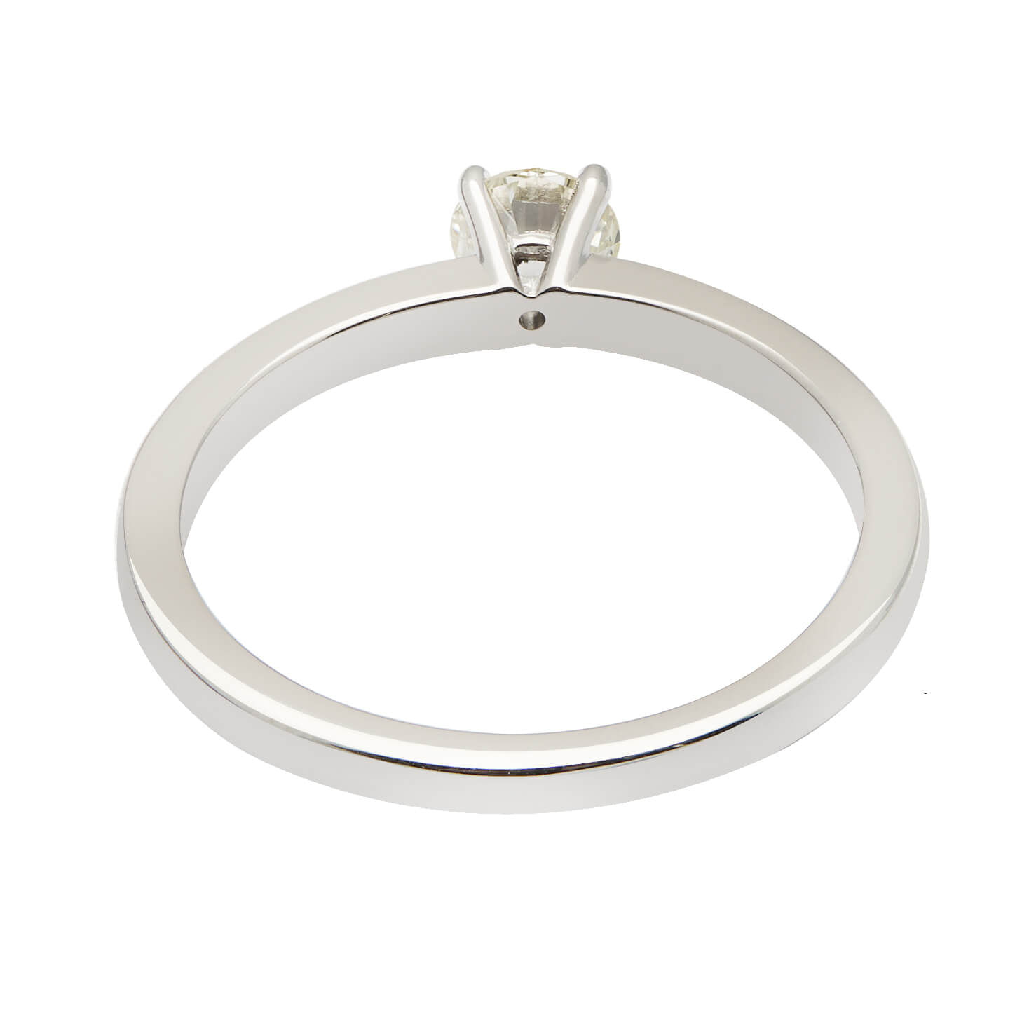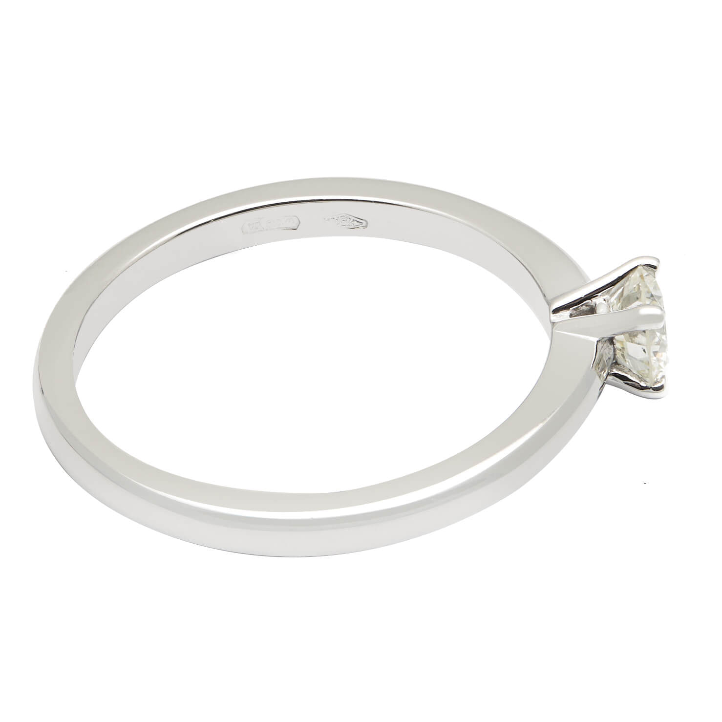 Anello solitario realizzato in oro bianco 18kt con diamante 0,35ct. L’articolo è una nuova creazione. Misura 15. Con certificato IGI