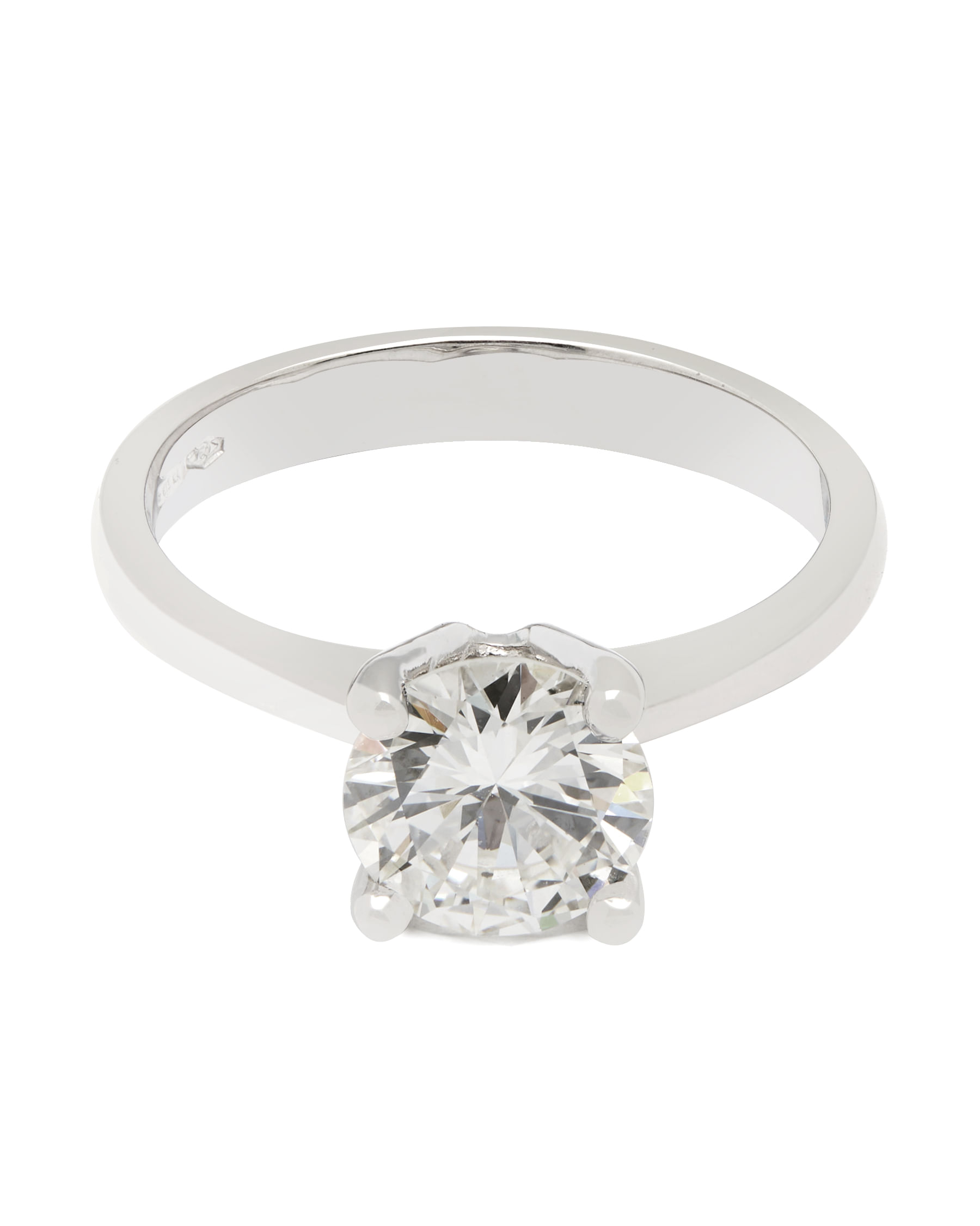 Anello solitario realizzato in oro bianco 18kt con diamante taglio round 1,66ct.Misura 16. Con certificato. L’articolo è una nuova creazione