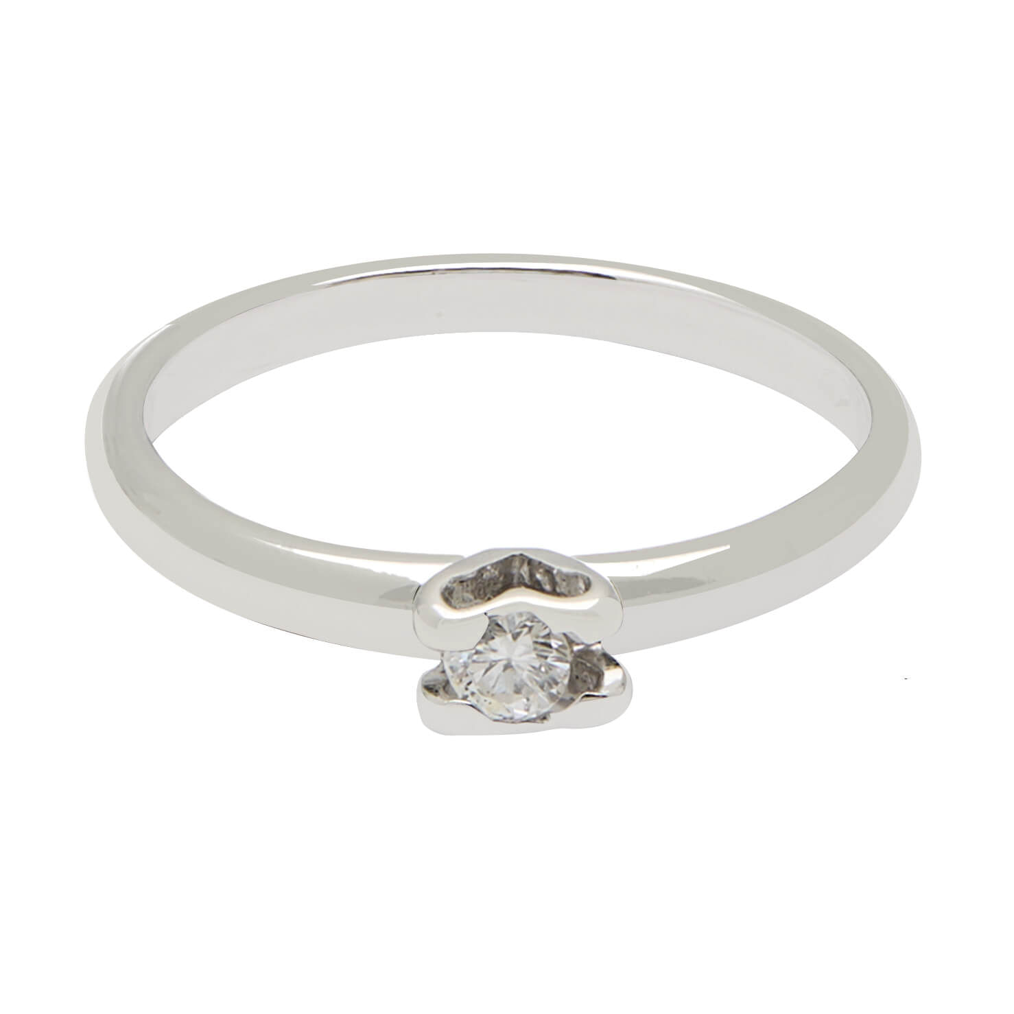 Anello solitario in oro bianco castone cuore con diamante 0,06ct