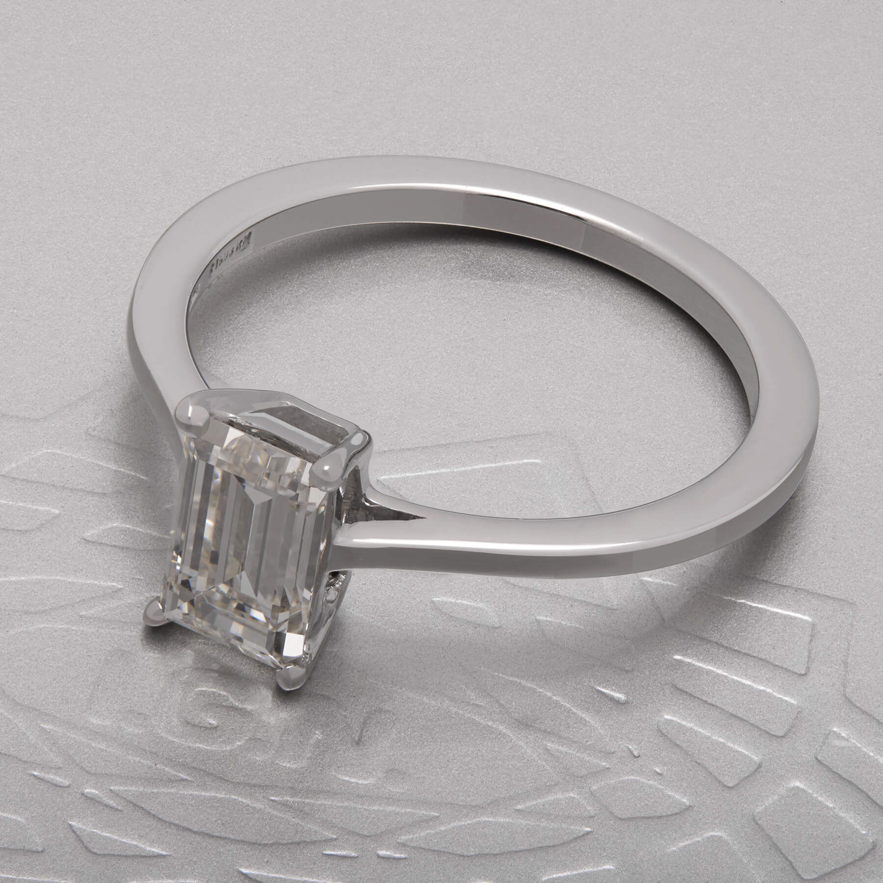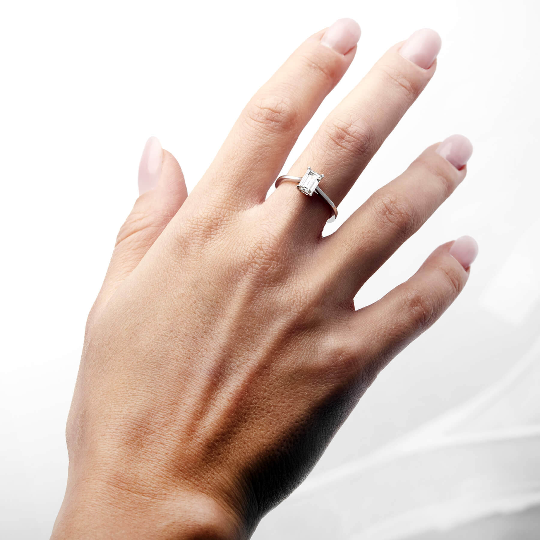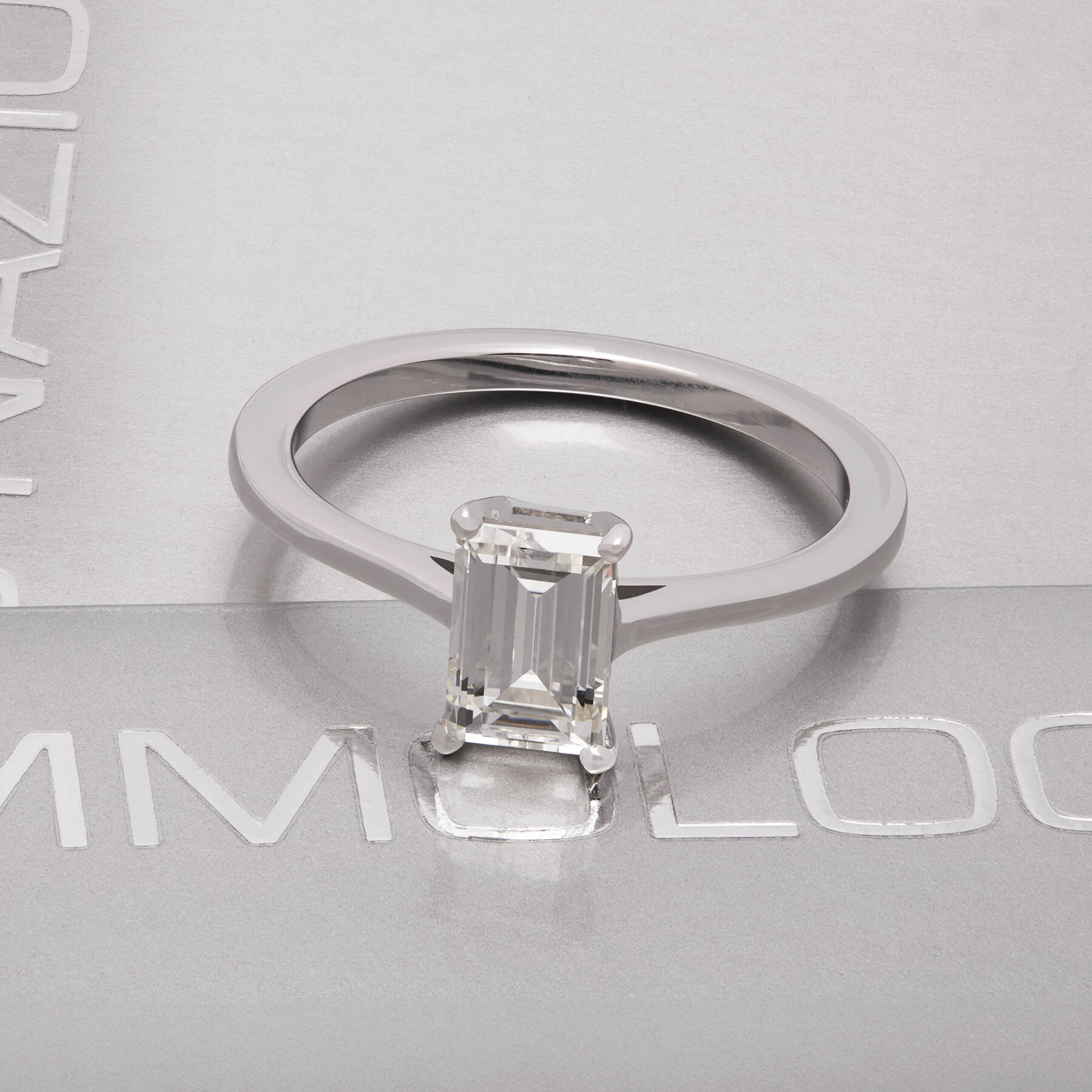Anello solitario in oro bianco con diamante emerald 1,04ct