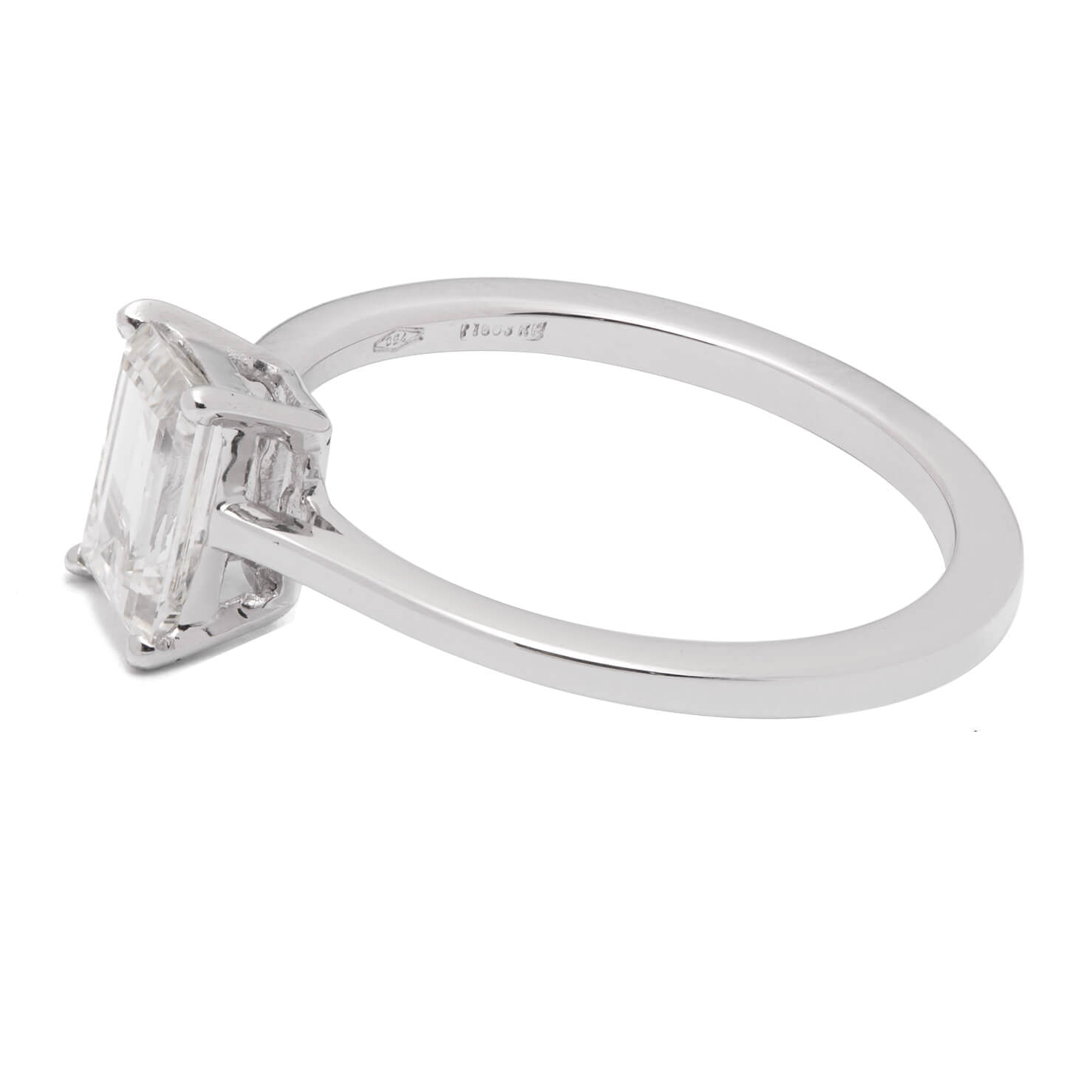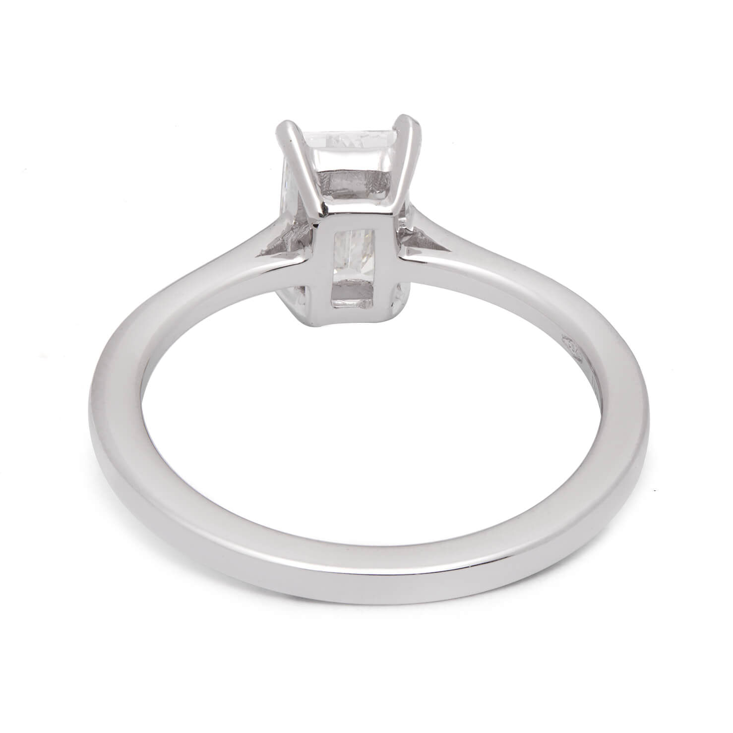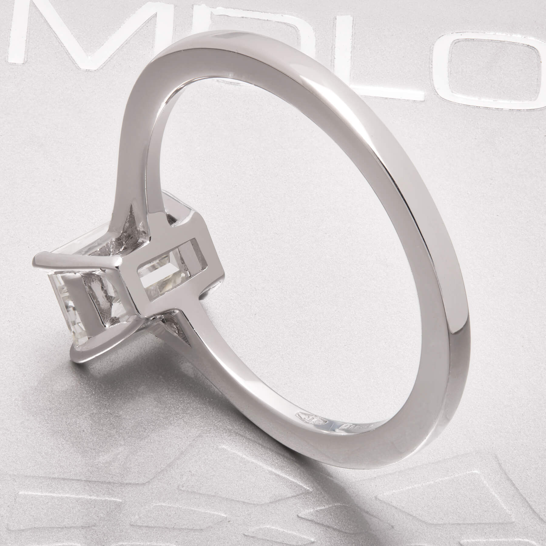 Anello solitario realizzato in oro bianco 18kt con diamante taglio smeraldo 1,04ct. L’articolo è una nuova creazione. Misura 13. Certificato IGN