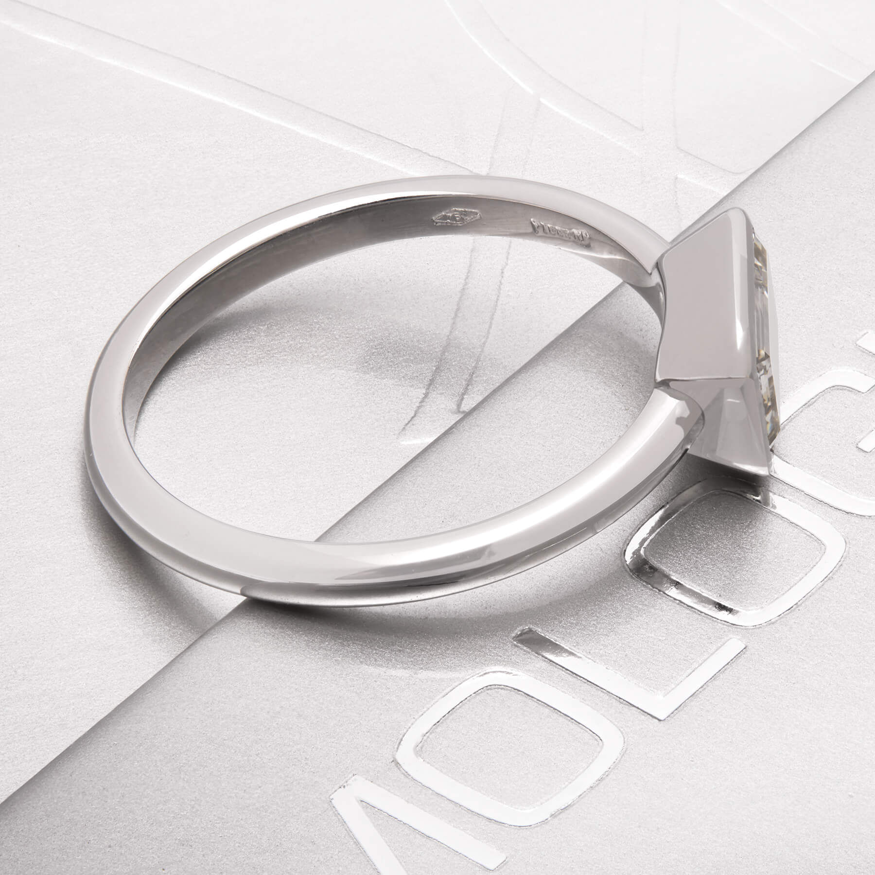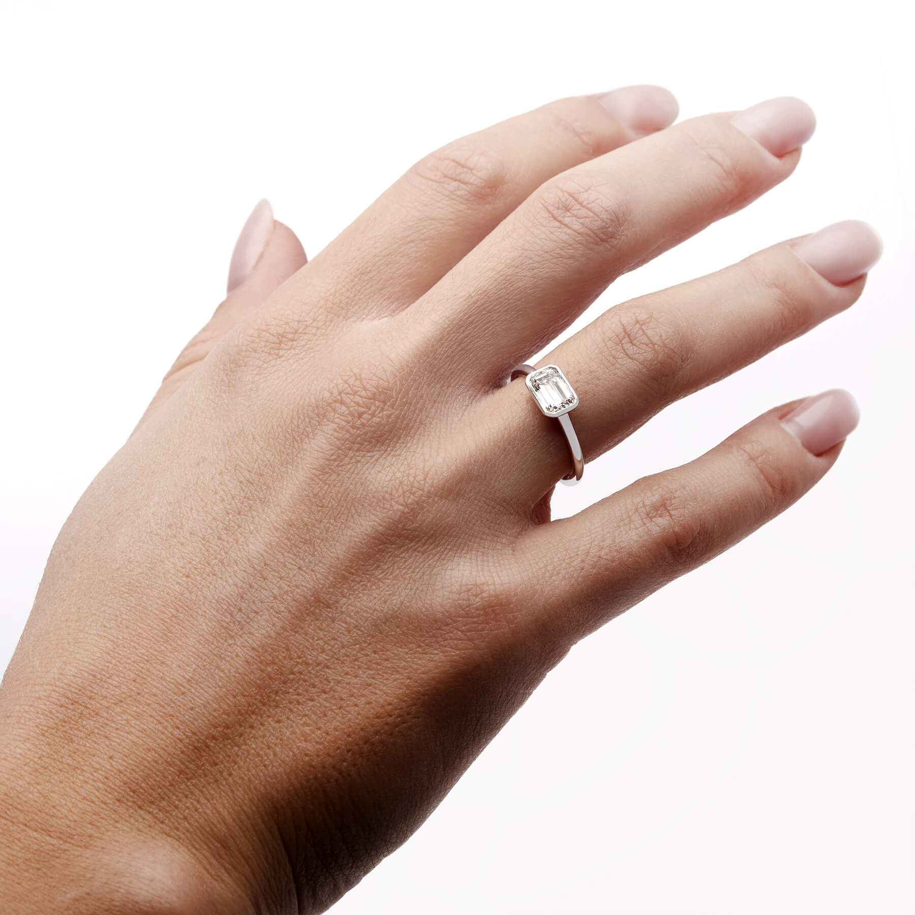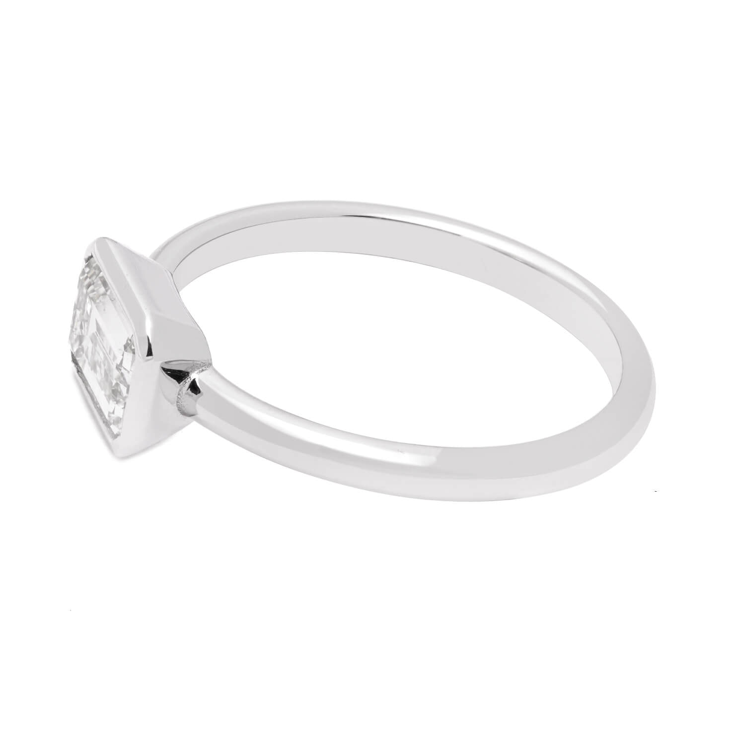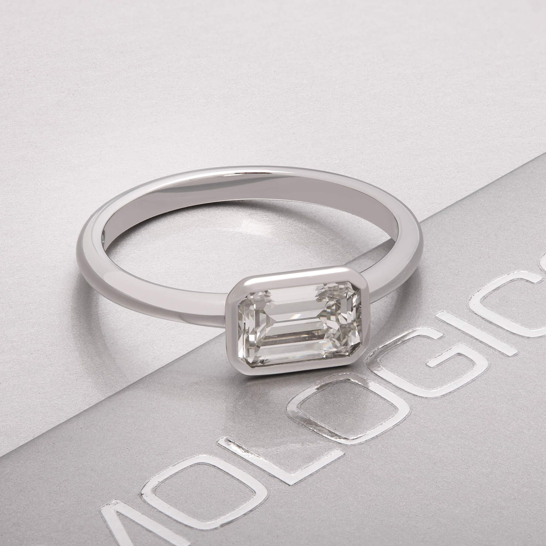 Anello solitario realizzato in oro bianco 18kt con diamante emerald 1,07ct. L’articolo è una nuova creazione. Misura 14. Certificato IGN